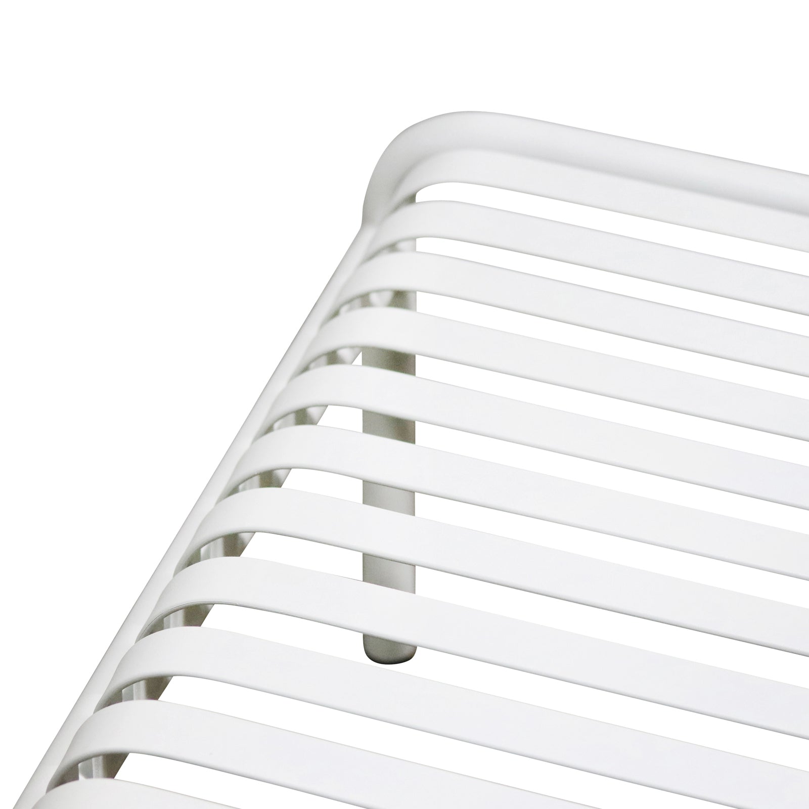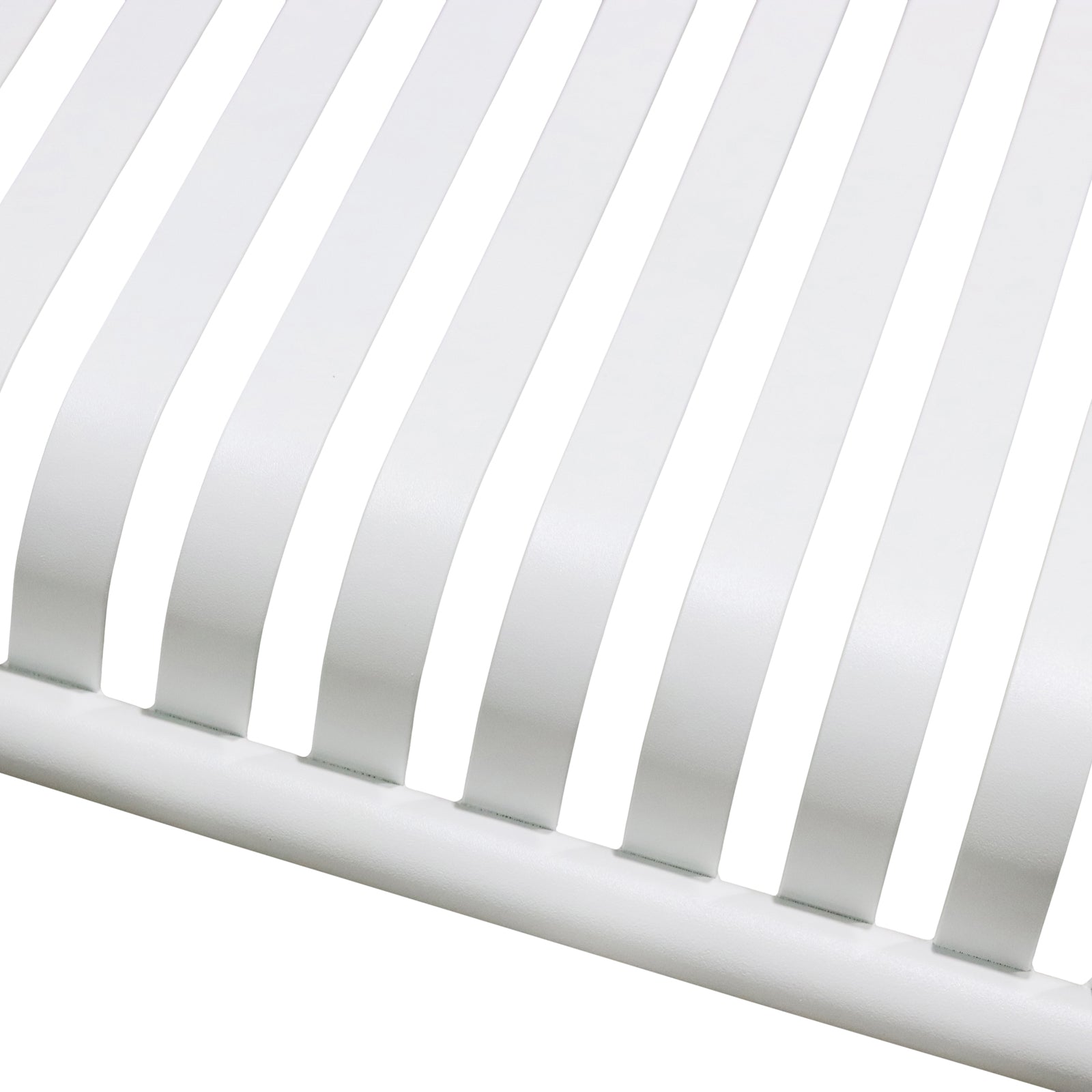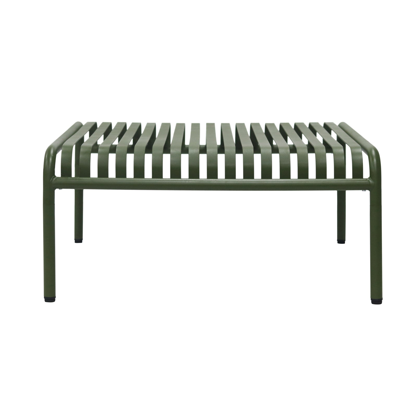 This outdoor table's exquisite slat design and gleaming surface make it look great on your patio, in your garden, or anywhere else indoors or out. Made of powder-coated steel, this table is rust, corrosion, and water-resistant for a long-lasting use.- Powder coated steel