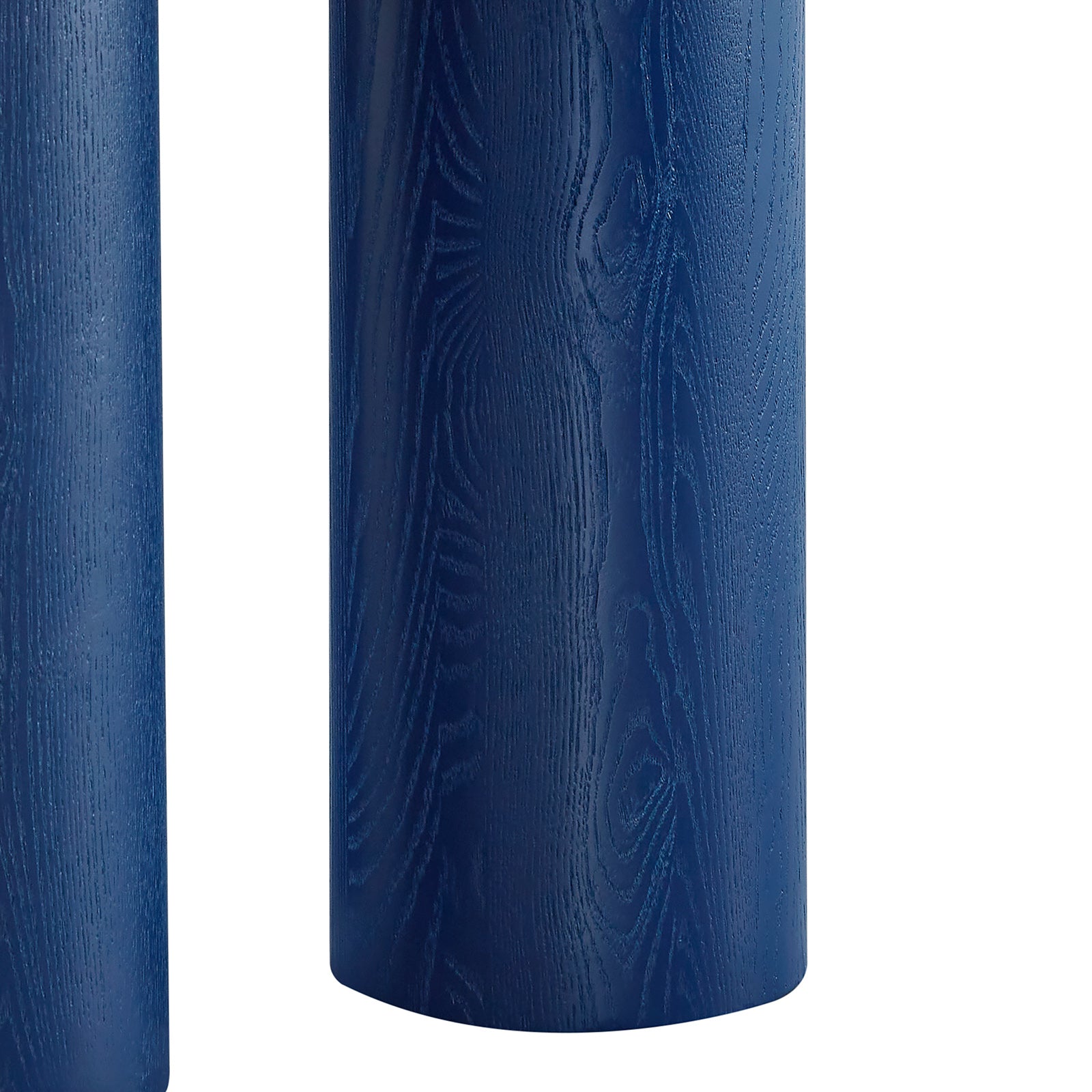 Introducing our latest masterpiece - our stunning Gunda Round Side Table. Enjoy the blend of form and function as it becomes the centerpiece of your living space. Elegant deep blue-stained ash veneer with hidden metal rod in each leg for unmatched sturdiness and long-lasting durability. This Round Side Table elevates your space and it's more than just furniture - it's a lifestyle choice.- Deep blue stained ash veneer