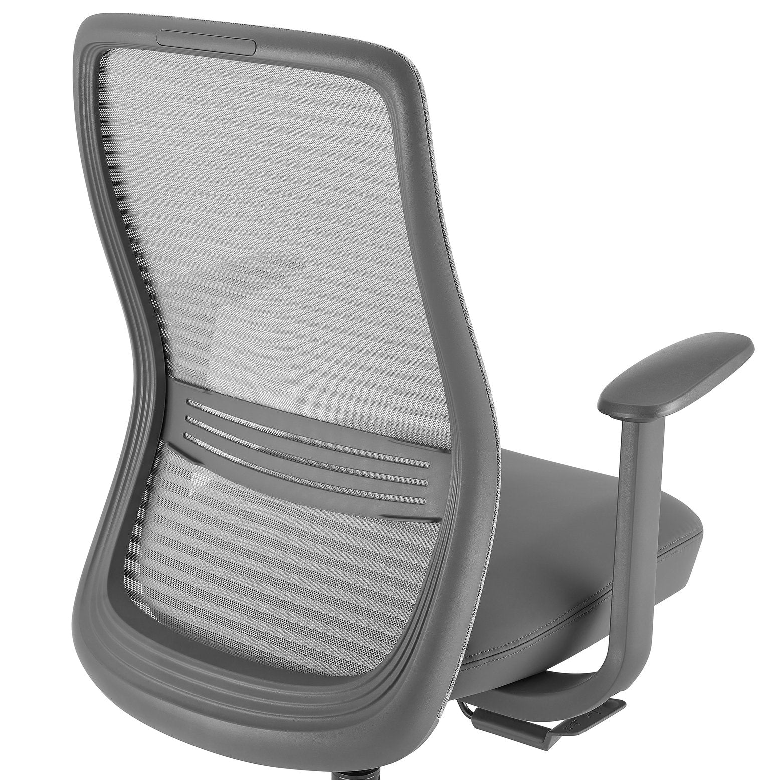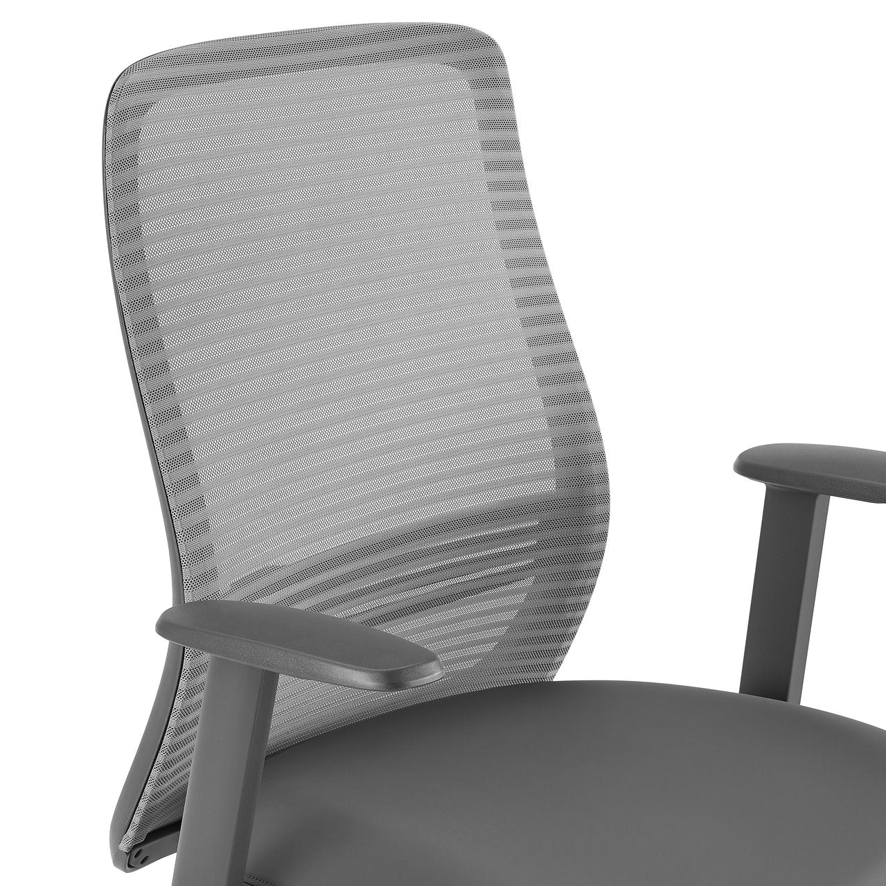- Seat: Leatherette over molded foam Leatherette: 30,000 double rubs Back: Mesh Mesh: 100,000 Double Rubs Frame: Nylon Fixed armrests Adjustable lumbar support Lumbar Support: Nylon & Fiberglass Center-Tilt mechanism with 1 locking position Gas Lift: Powder-Coated Steel 360° Swivel Base & Casters: Nylon Assembly Required Weight Capacity: 300 lbs. Contract-Grade