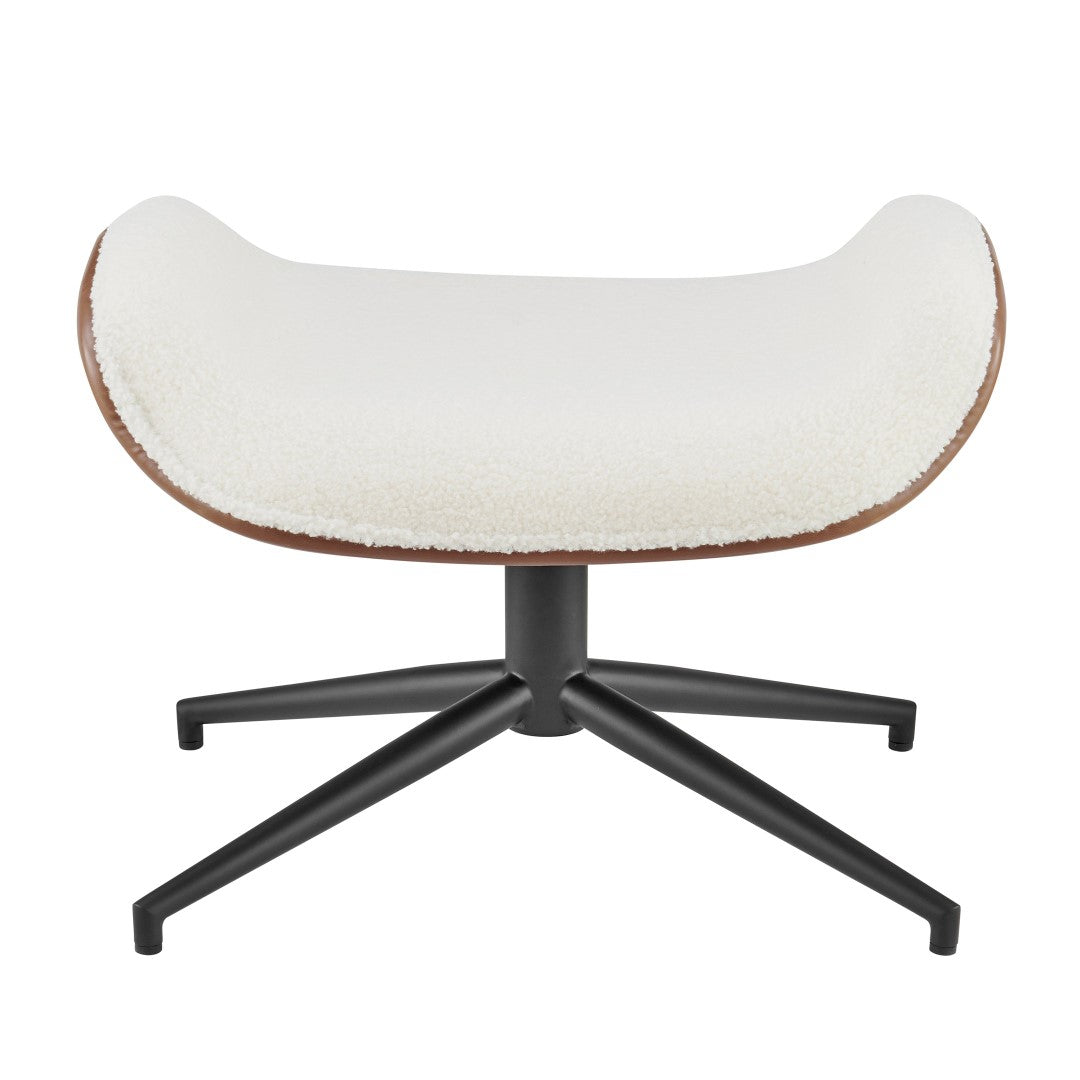 - Mix of textured leatherette and fabric over foam Sherpa fabric inner seat Leatherette outer bottom section 70,000 double rubs Powder coated steel base Designed by Cristiano Tomasso Weight capacity 300 lbs. Contract Grade