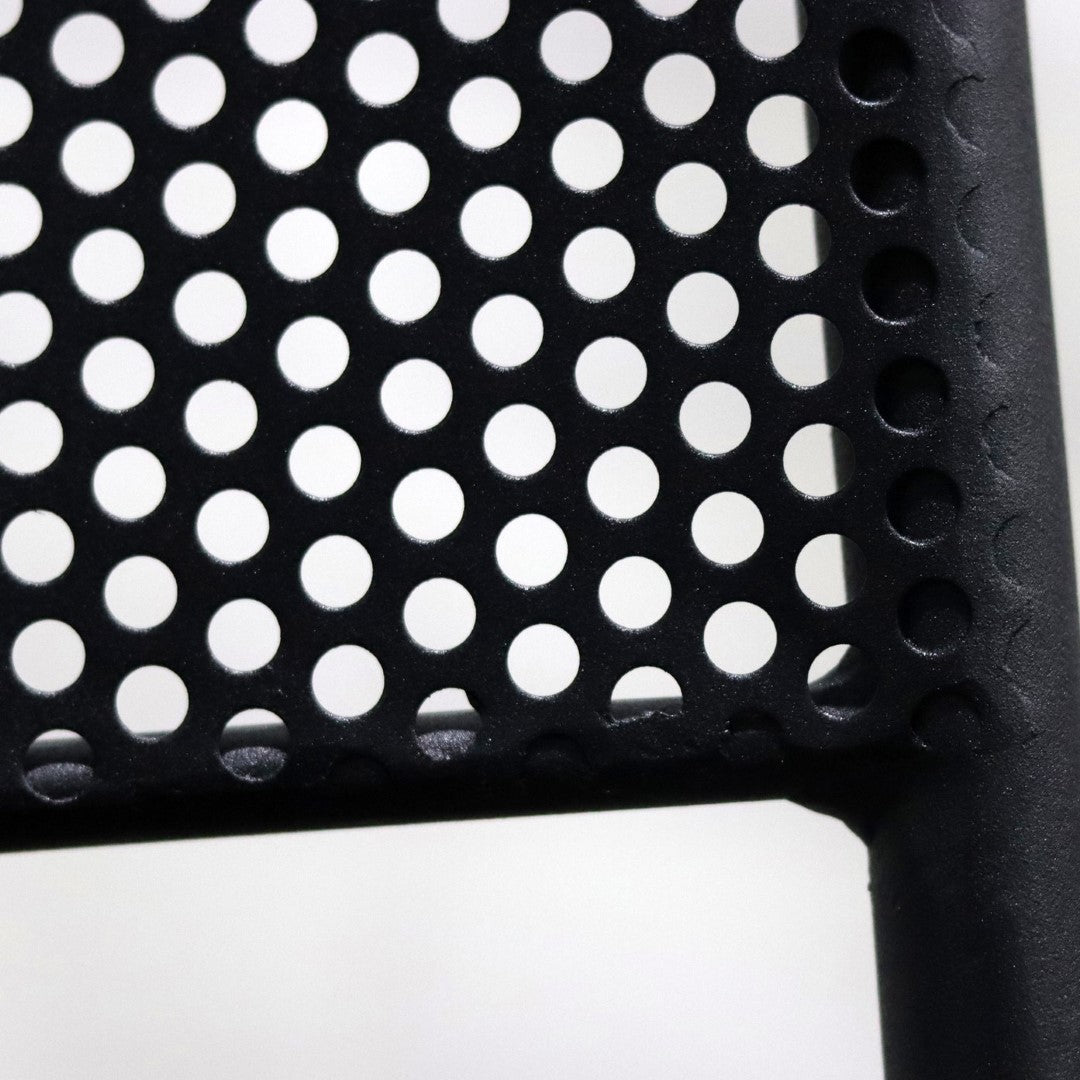 - Anti-rust electrophoresis outdoor treatment Double powder coated steel Mesh seat and back Weight capacity 300 lbs. Indoor/Outdoor Stackable up to 8 units Designed by Cristiano Tomasso Contract Grade