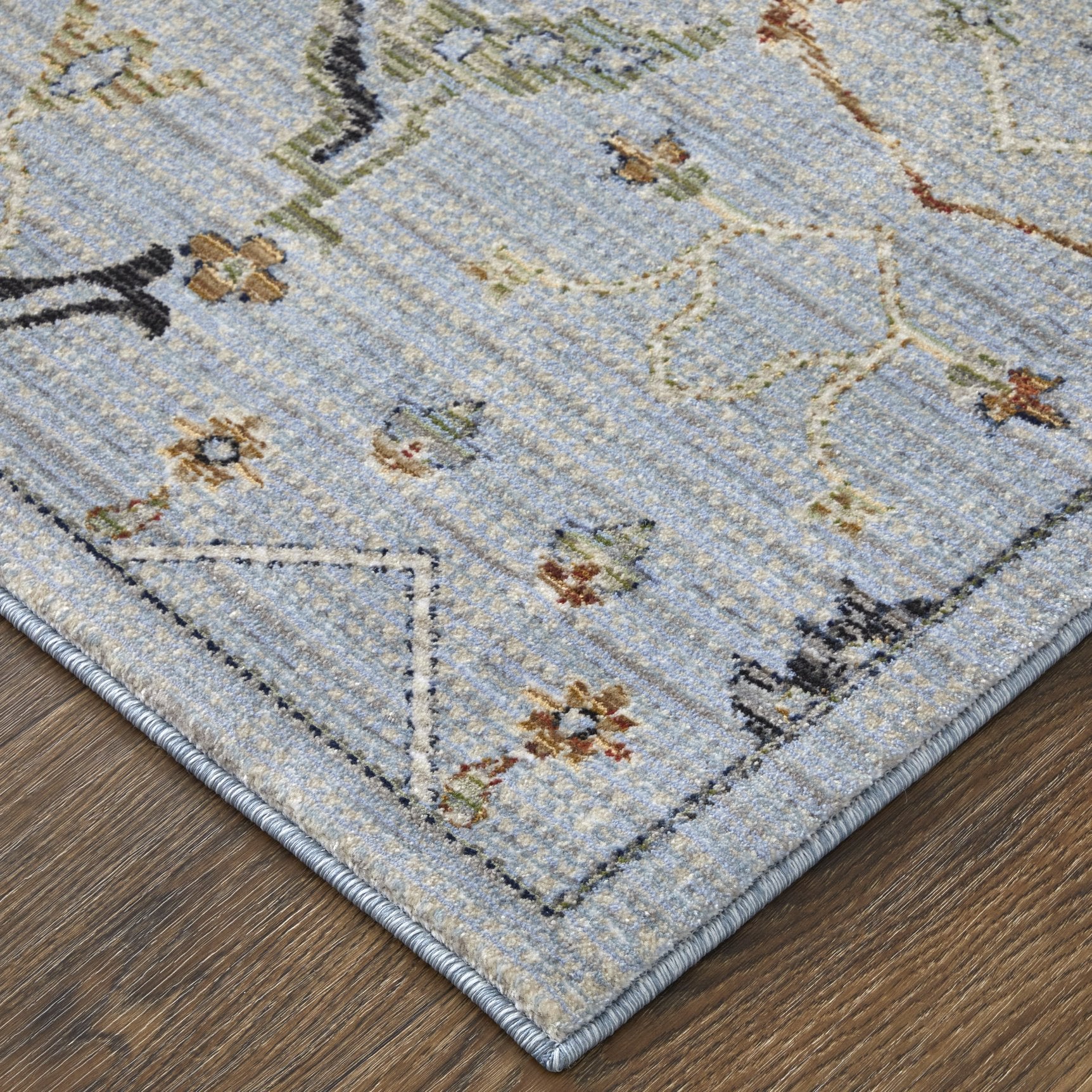 - A transitional floral, ikat rug aesthetic, blending blue, green, and taupe, infuses style into home décor.