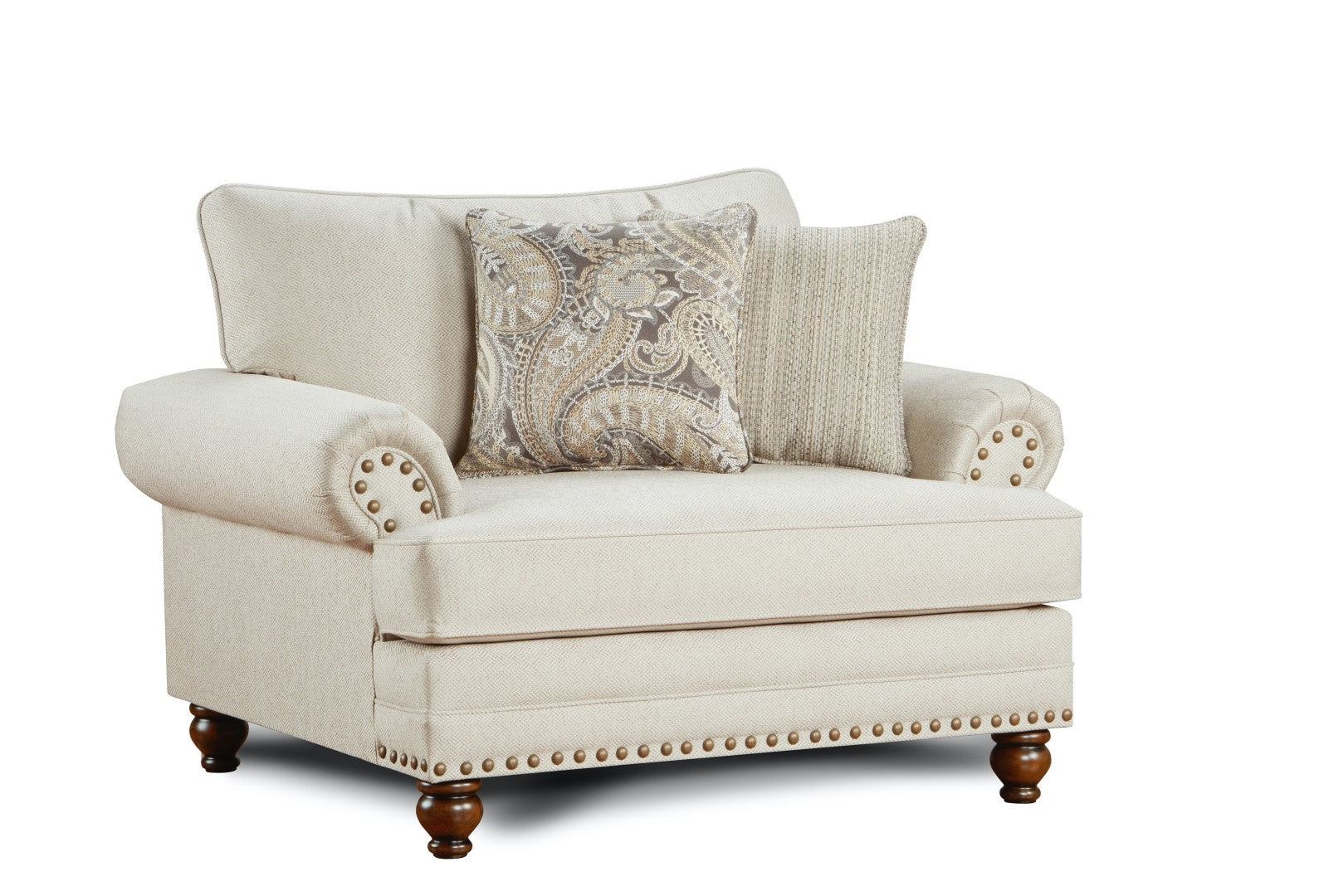 - Feature 7: Bates Charcoal chair 1/2 has a lot going on for one piece. From its nailhead trim to its flaired rolled arms with a five knuckle pleat to its two-tone sculpted wooded legs to its curvaceous back pillows, this chair drips of taste and elegance. With two pillows with completely different looks, Bates Charcoal is as versatile as it is beautiful. You'll love your chair and so will your friends and neighbors!