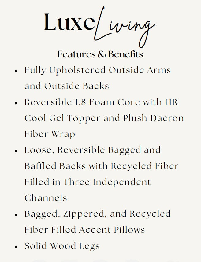 - Fiber filled back cushions that are bagged and channeled