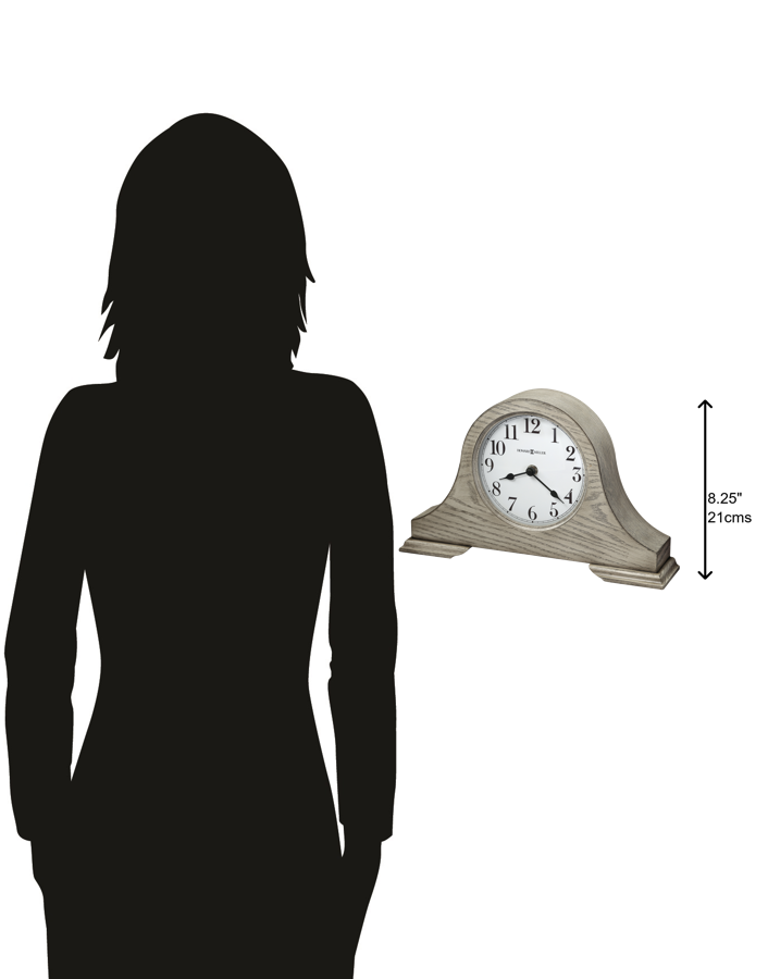- Enhance any space with the refined beauty of the Emma wooden mantel clock. It has a classic tambour design, with graceful curves and a warm gray finish that fits effortlessly into any interior design style. Natural wood graining adds a rustic look to this versatile clock. Graceful Curves: Howard Miller is renowned for its stylish, high-quality timepieces and this one is no exception. It has a curvy tambour-style body to enhance your home with traditional elegance and a neutral gray finish that coordinates with any other colors. Durable Construction: The body of this clock is crafted with select hardwoods and enhanced with veneers for enduring quality and beauty. Place it on the living room mantel or bedroom nightstand for a functional home accent piece. Refined Details: The crisp white dial of this table clock contrasts with its black spade hour and minute hands and black Arabic numerals. A convex glass crystal cover protects the dial and adds an upscale look to this timepiece. Quartz Movement: Quartz, battery-operated movement requires 1 AA battery (not included). Howard Miller: Founded in 1926 and still family-owned in its third generation, Howard Miller is the world&rsquo