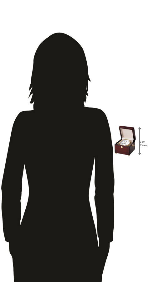 Classic Wood Finish: This timepiece has a high-gloss Rosewood Hall finish, which is applied over select hardwoods and veneers for durability and an elegant look. This table clock is a good size for a side table or desk.
