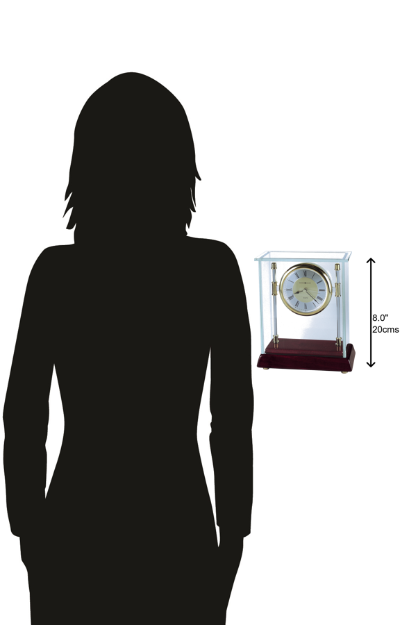 - TABLE CLOCK: The Kensington Table Clock has a high-gloss Rosewood Hall finish base and a glass bracket case to protect the chrome-finished pillars to compliment your home decor. The clock&rsquo