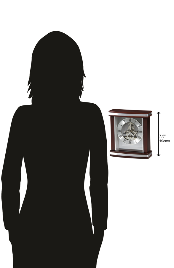 - Accent your mantel, desk, or table with the Templeton wooden table clock. It has a visible skeleton movement for an eye-catching look, along with a felt bottom to protect your furniture. Contemporary Styling: This carriage clock has a gracefully curved front with a rosewood finish. Silver accents impart a touch of stylish contrast, and a protective glass crystal allows for clear visibility. This timepiece is suitable for curios and small spaces. Intricate Details: The skeleton movement of this clock has a polished silver finish that coordinates with the silver accents. The numeral ring features black Roman numerals with spade hour and minute hands