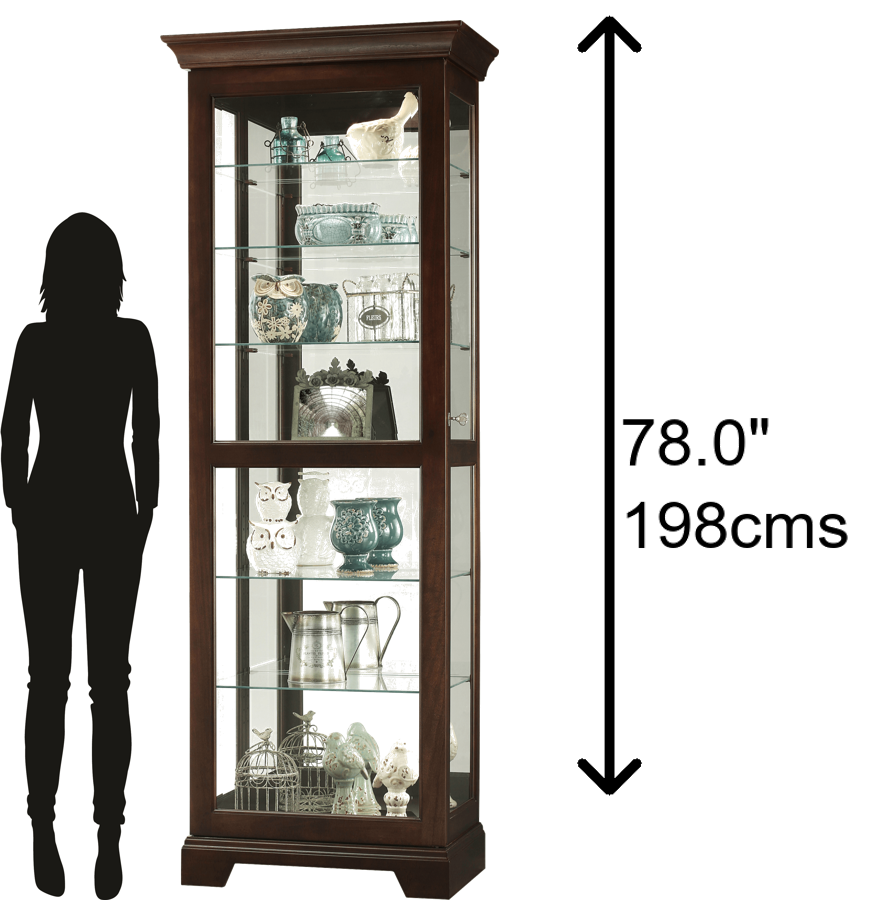 - Fall in love with the stunning design of this lighted curio cabinet by Howard Miller. Add this piece to any room to showcase your favorite collectibles on the glass display cabinet&rsquo