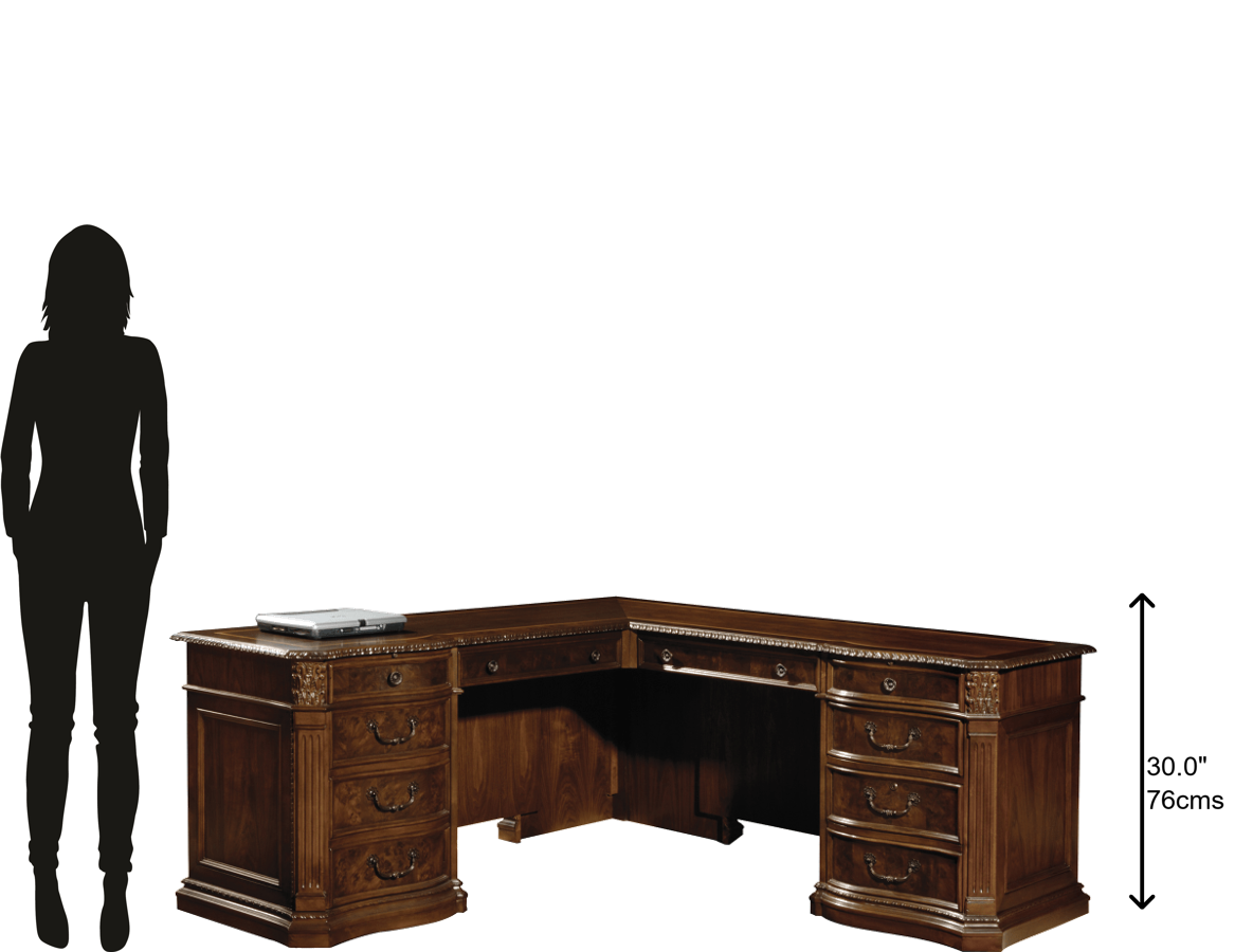 - Right Side: Drop front center drawer for keyboard, laptop or tablet storage. Two box drawers and one locking file drawer for letter or legal files, and pull-out writing surface.