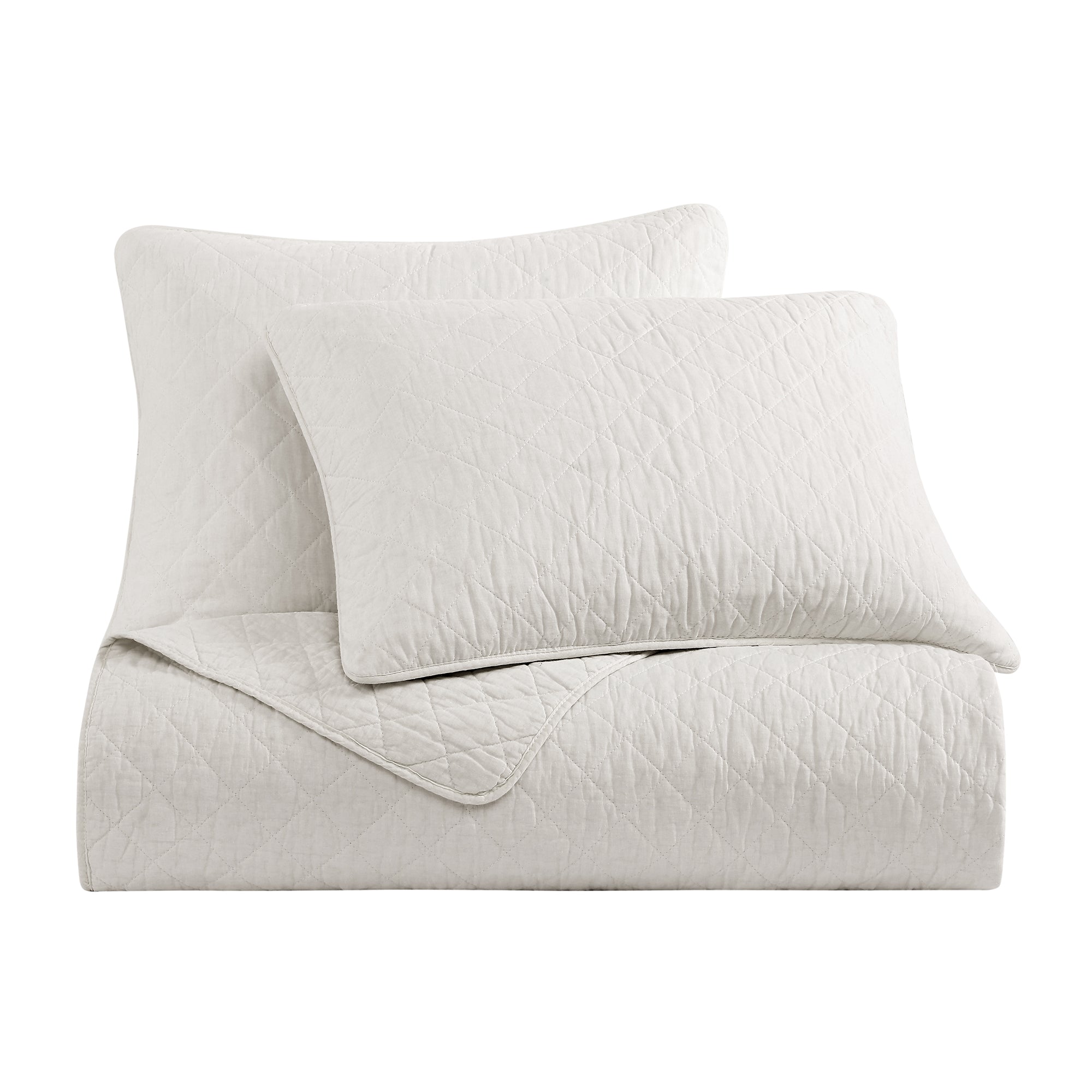 Indulge in the timeless elegance of the Cotton Comfort Quilt Set, a perfect blend of style and functionality. This three-piece bedding ensemble is designed to elevate your bedroom decor while providing an exceptional level of comfort. Crafted from 100% cotton gauze, the quilt and shams feature a delicate diamond quilting pattern that adds depth and texture. Each piece is individually garment-dyed and stonewashed, ensuring that you receive a unique and ultra-soft product. Whether you're seeking a light layer for warm summer nights or a cozy middle layer for the chilly winter months, this versatile quilt set is an ideal choice. Available in a variety of neutral, cool-toned, and warm solid colors, it complements any interior style, layering beautifully with intricate prints or coordinating with our Porto Matelassé and Verona collections.