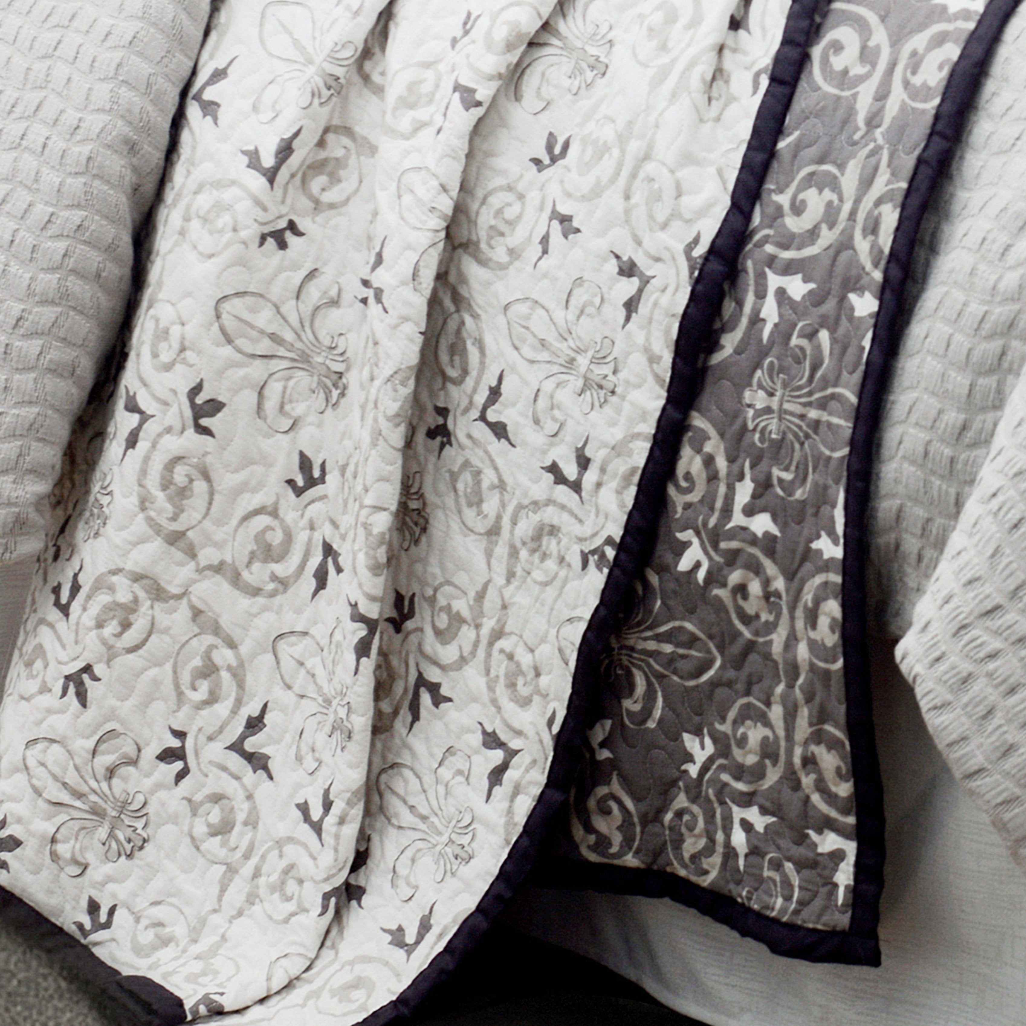 - Generous quilt dimensions: 110"W x 96"L; pillow shams measure 20"W x 36"L