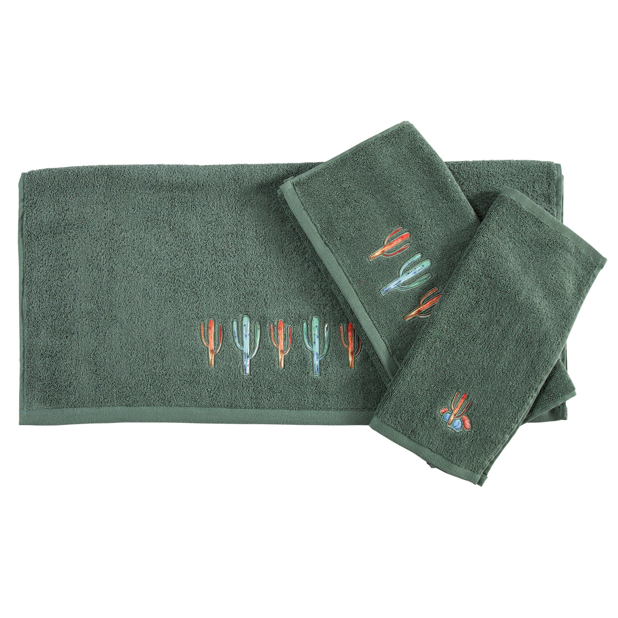 - Features whimsical embroidered cactus designs that bring a Southwestern flair to your bathroom.