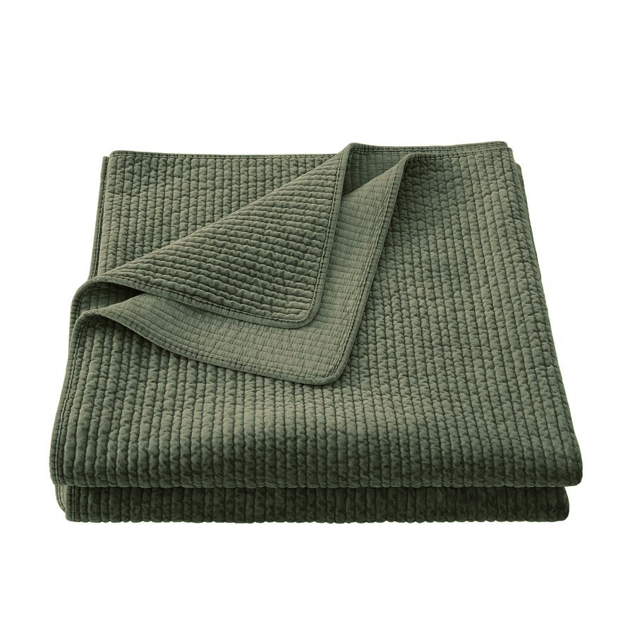 Irresistibly soft and cozy, this quilt brings a warm, lived-in charm to any room. Our stonewashed cotton velvet quilt has a substantial hand and easy drape, accentuated by channel quilting for a simple yet modern look. Durable and easy to care for, this quilt acts as a lightweight standalone piece for warmer months but transforms into a versatile layering element during cooler months. Its availability in a wide range of neutrals and jewel tones means there's a sumptuous quilt for your style, whatever that may be.