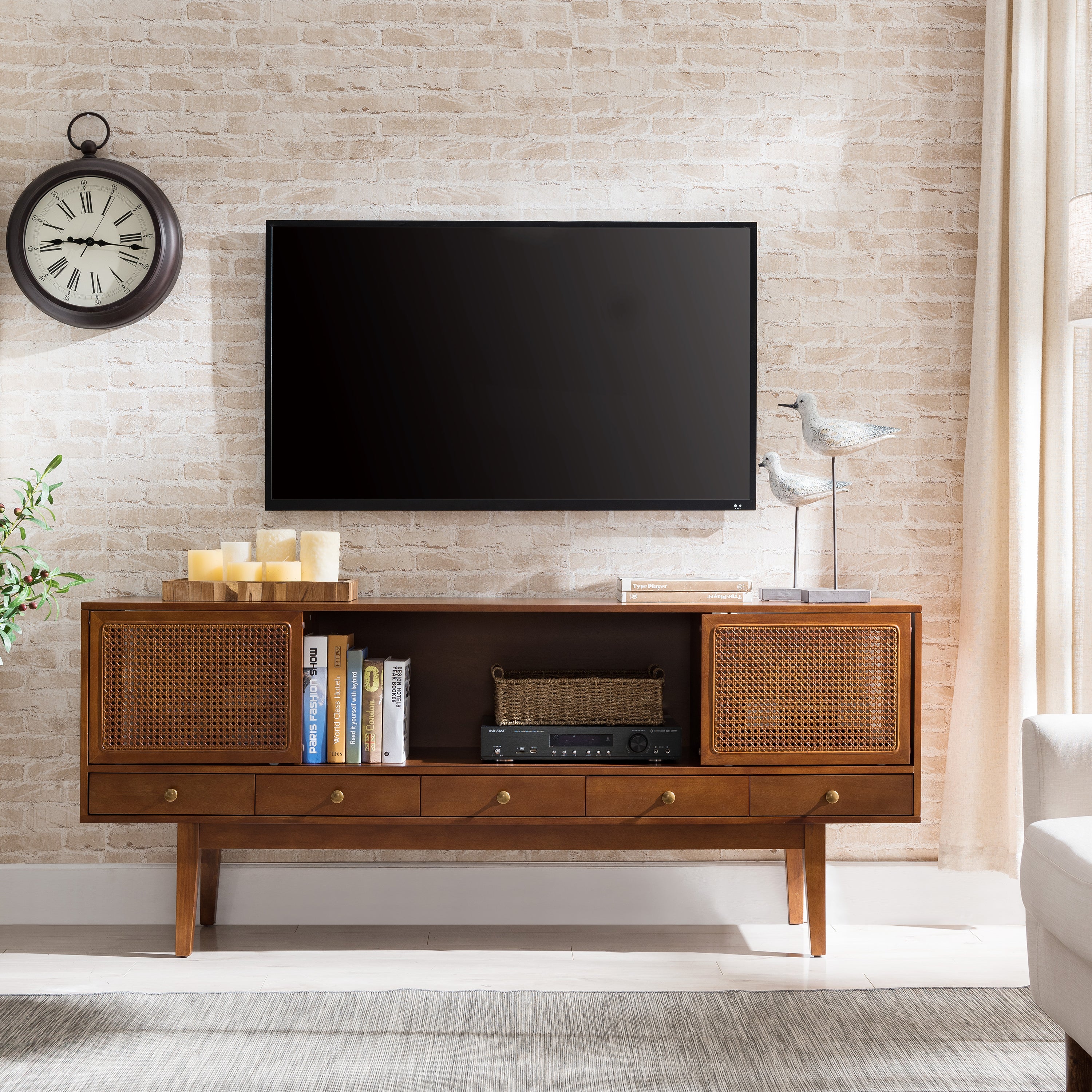 - Material: Engineered wood, poplar, birch veneer, rattan