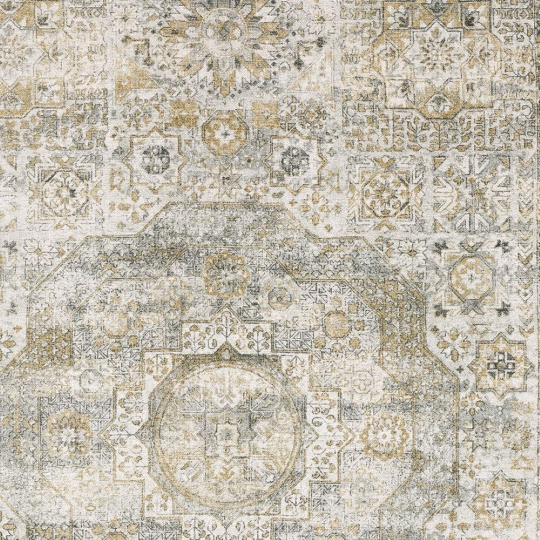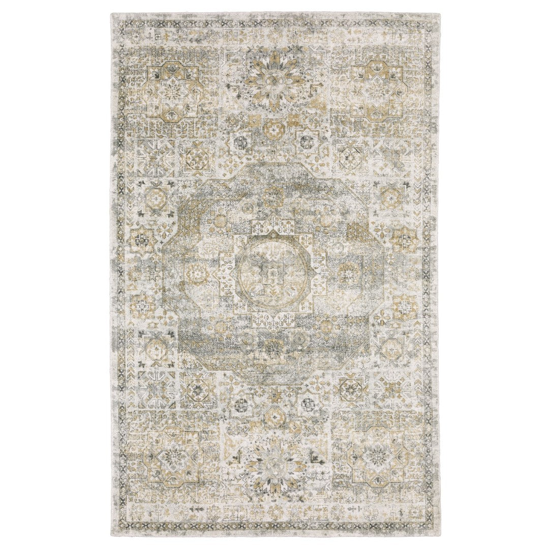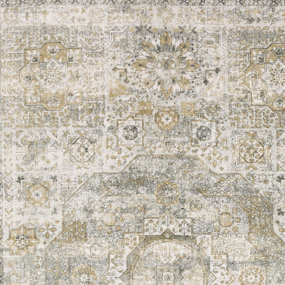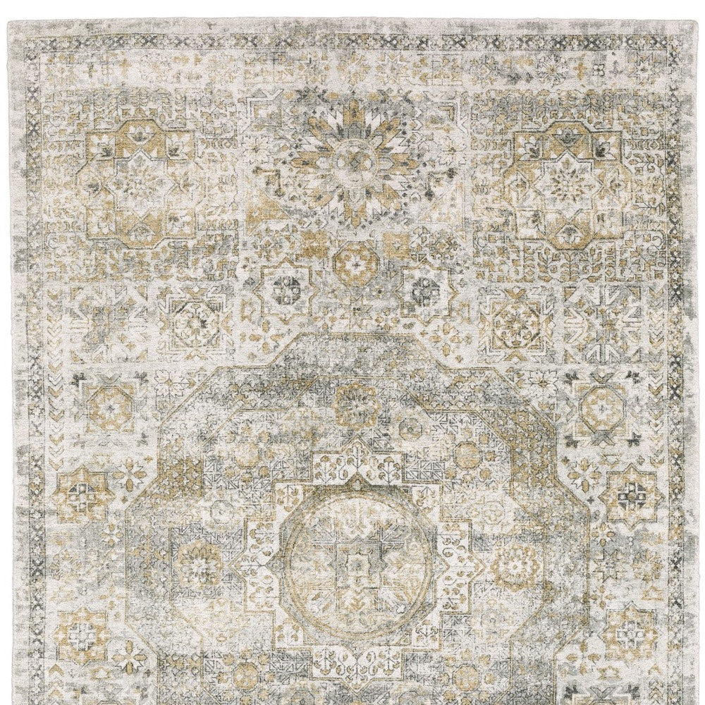 - Handmade wool blend area rug perfect for the living room, featuring a traditional gray and gold design.
