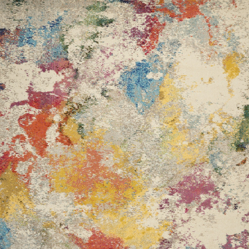 - Contemporary ivory area rug made from durable polypropylene, easy to vacuum for maintenance.