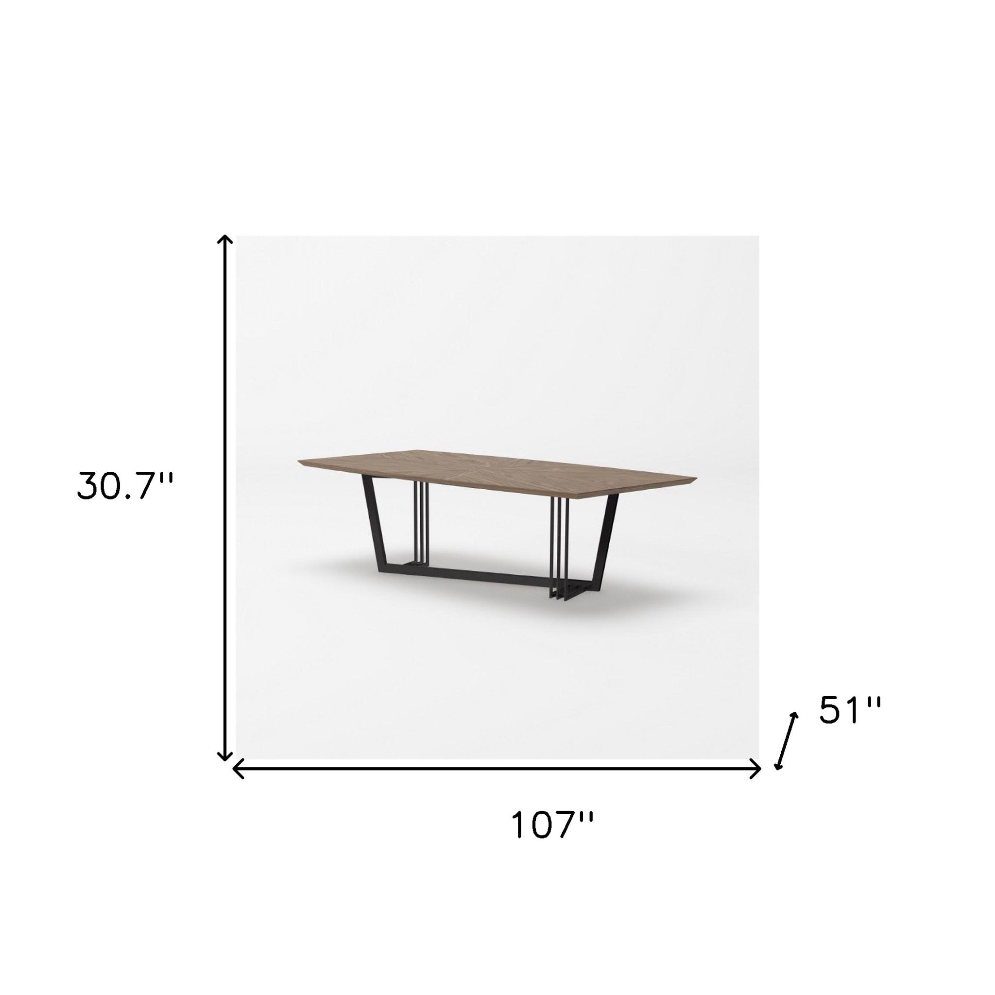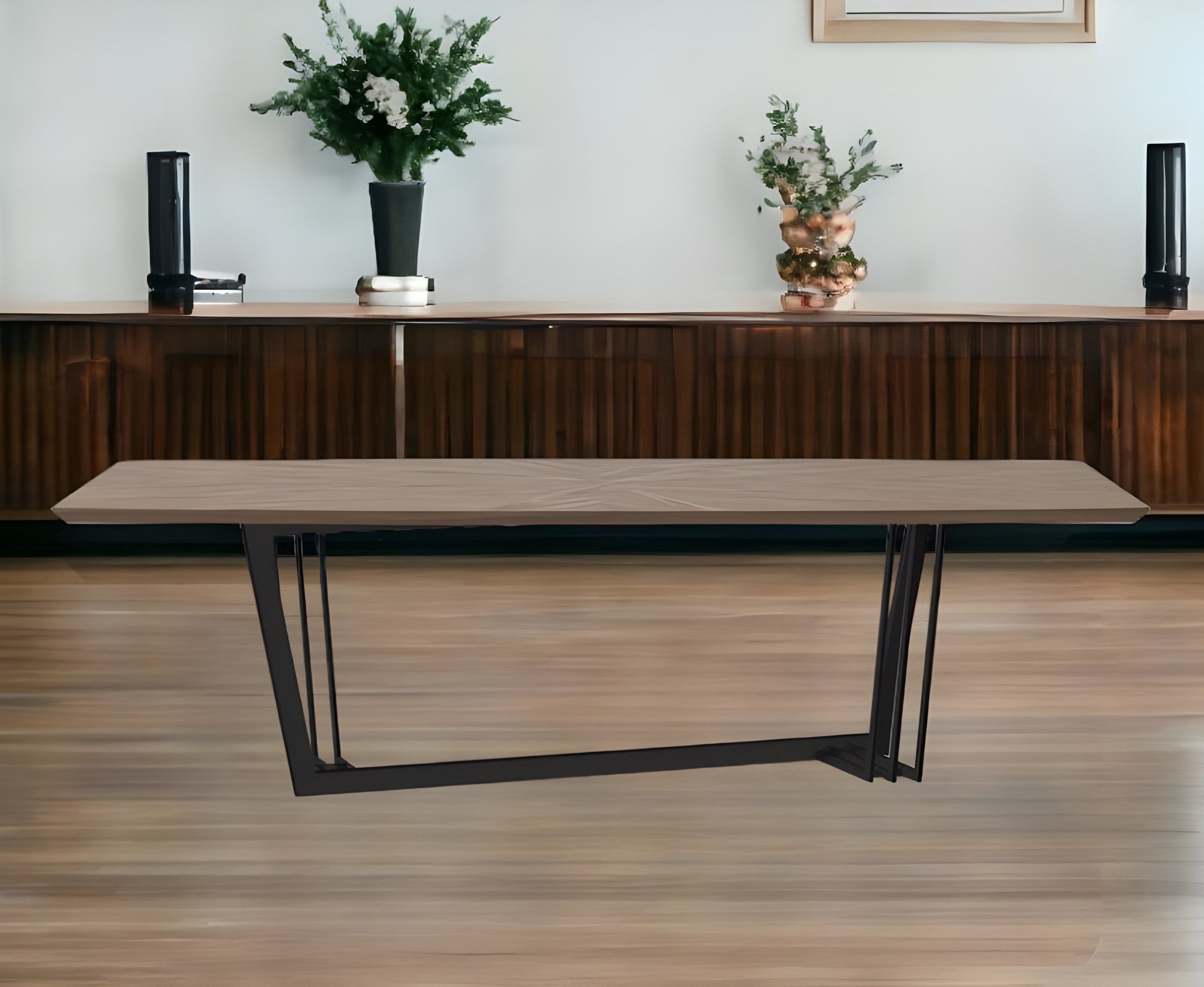 - Sleek and Modern Walnut Veneer and Black Iron Dining table.
