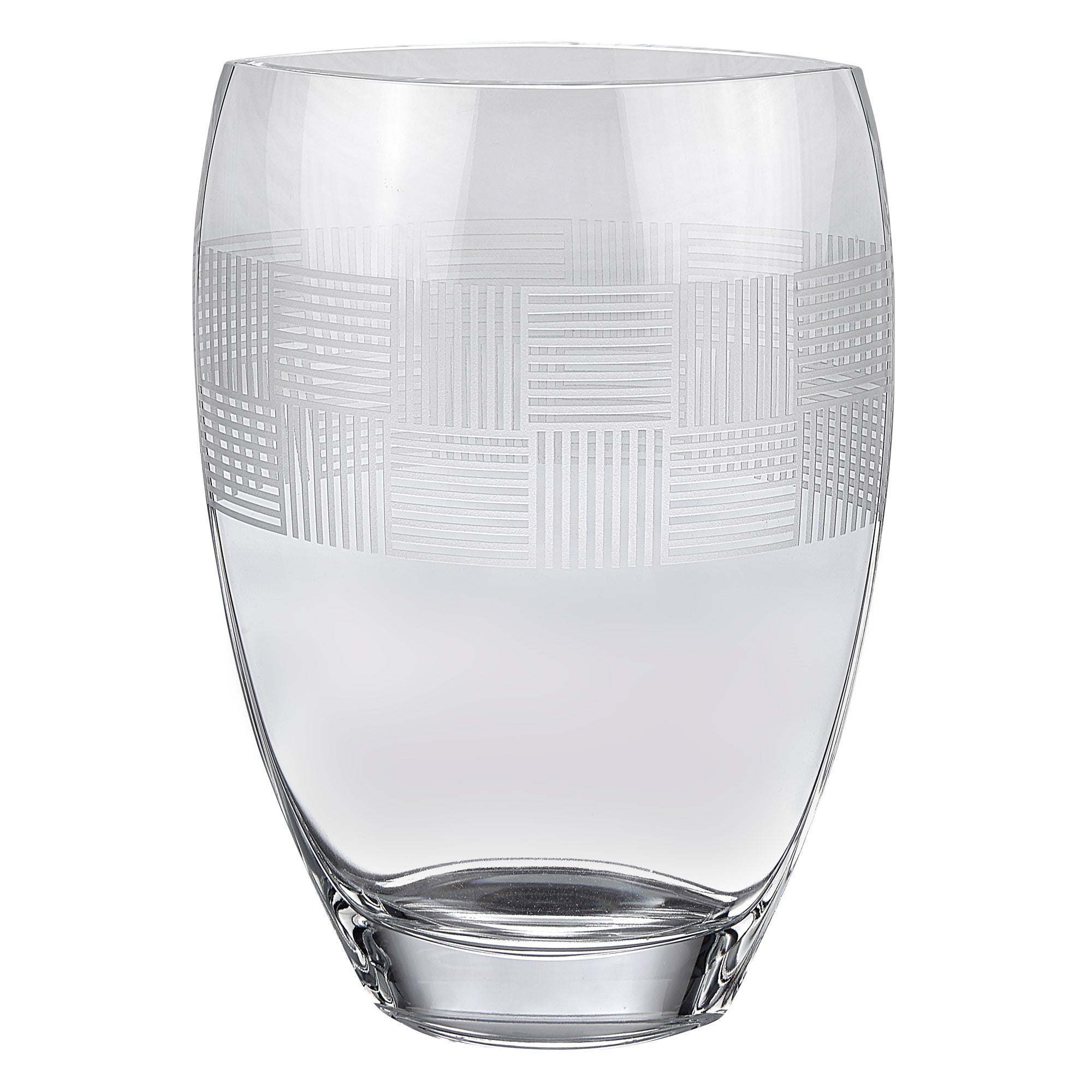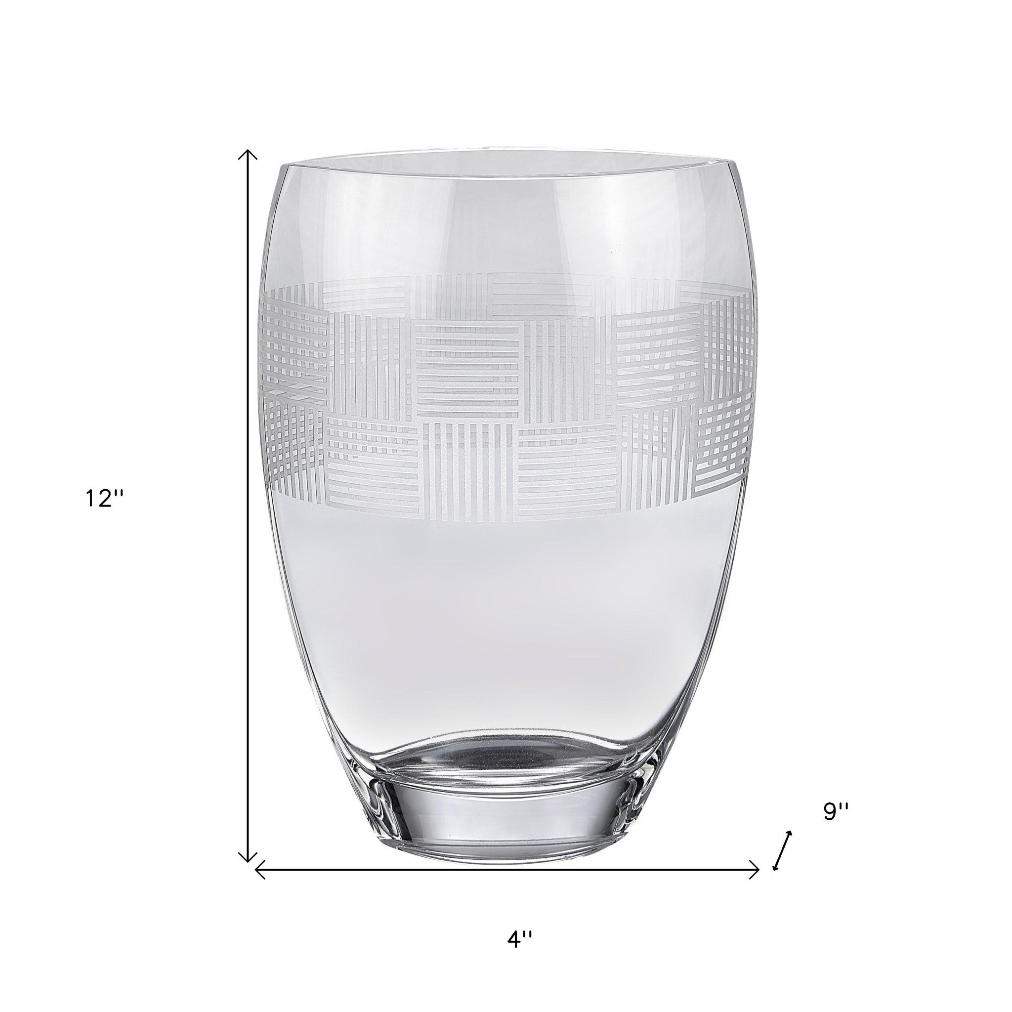 - Modern and contemporary clear glass vase with sandblasted geometric frosted design.