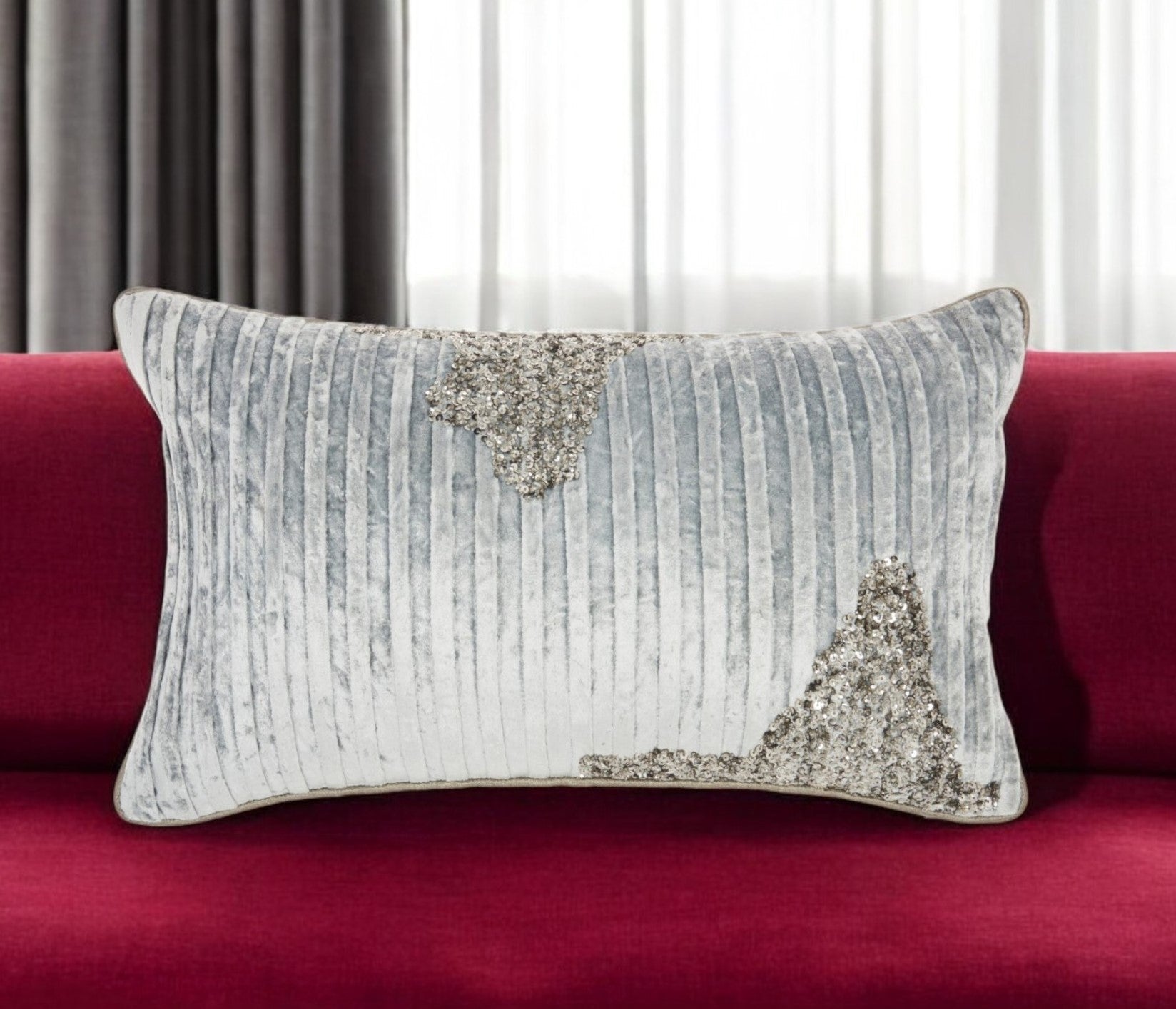 - Luxurious accent pillow with a glamorous periwinkle color.