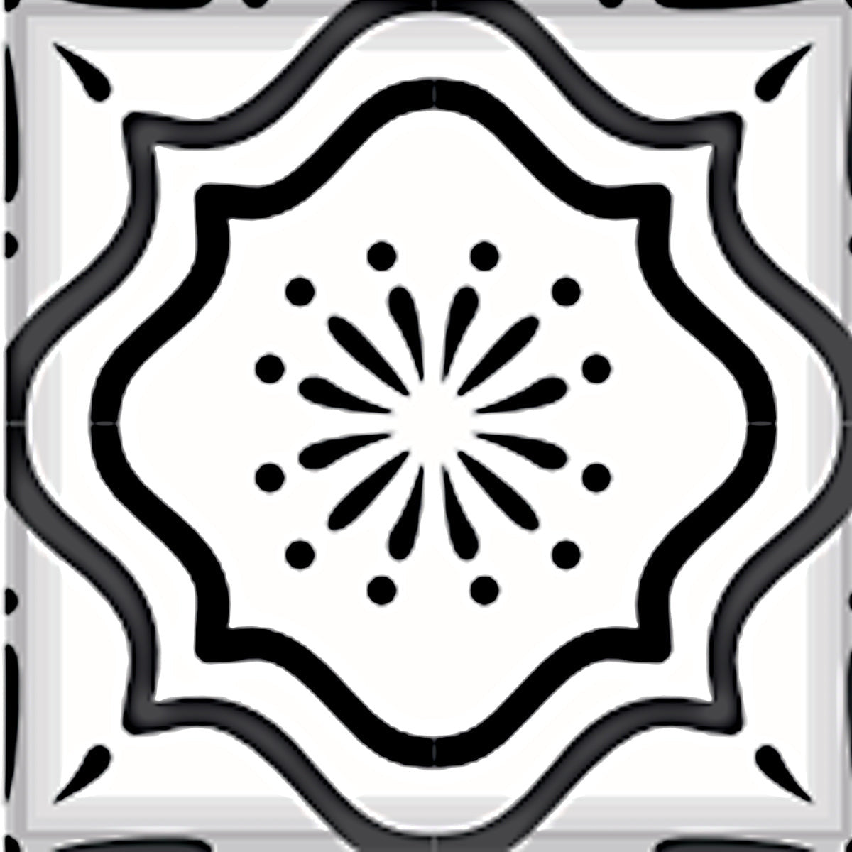 - Square-shaped tiles with a stylish Arabesque mosaic pattern.