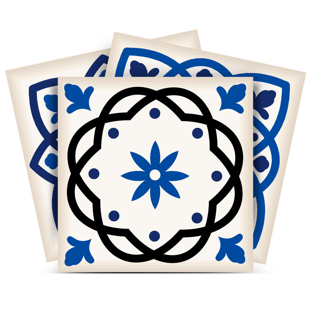 - Glossy blue and white Arabesque pattern.
