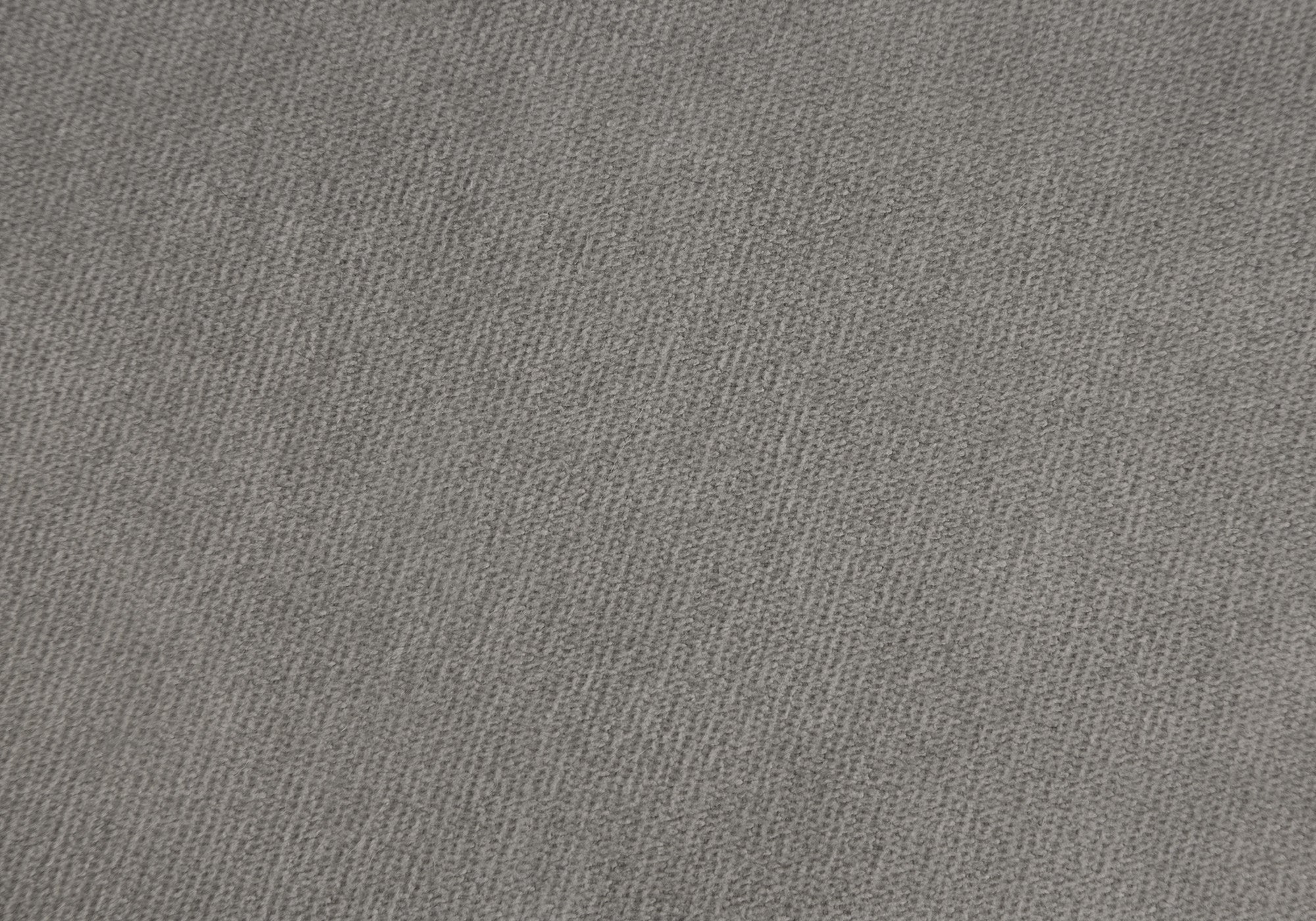 - Round ottoman with a padded seat for comfort and upholstered in a grey fabric with a plush texture