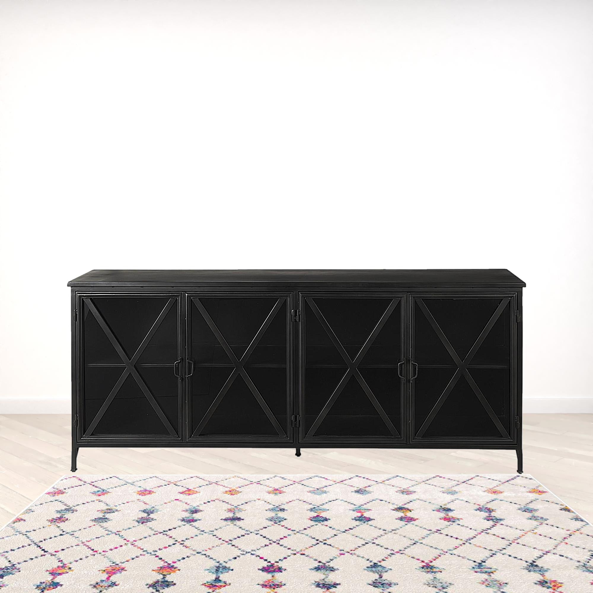 - Farmhouse style sideboard with a standard cabinet design.