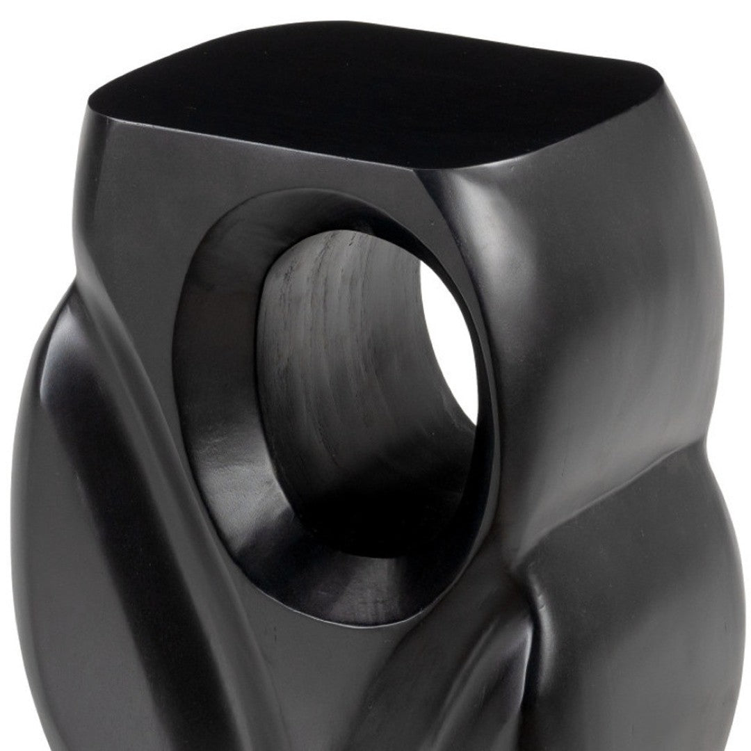 - Black striking and bold contemporary design end or side table with a modern abstract figural base and rectangular top.