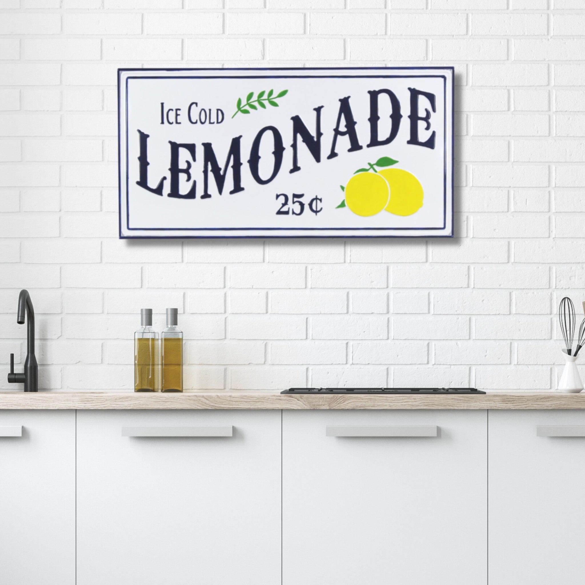 - Ice Cold Lemonade 25 cents! Hanging metal lemonade wall decor.