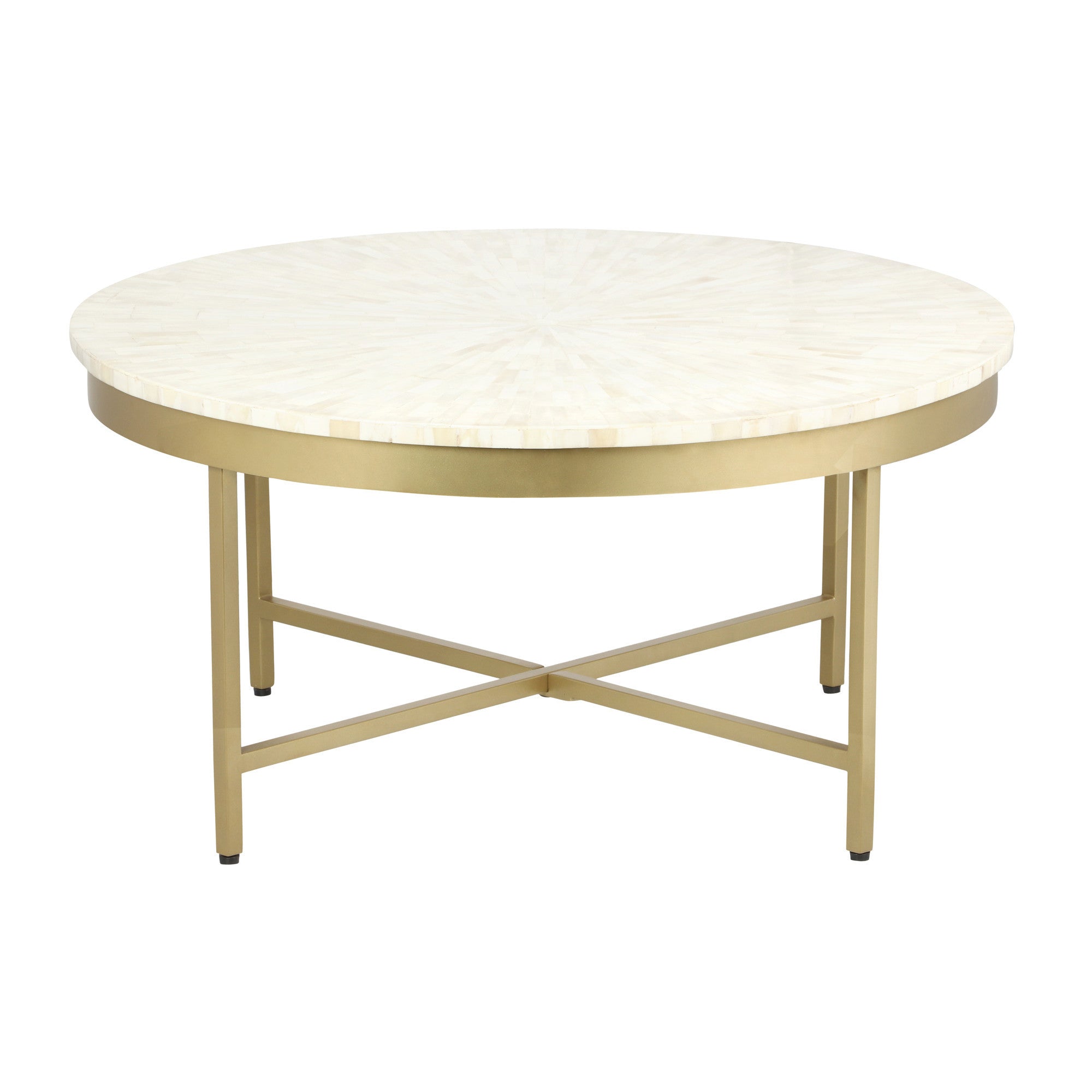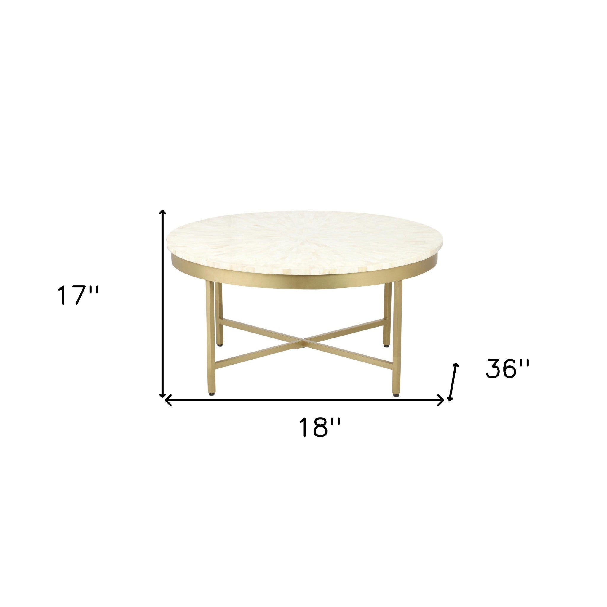 - Features a gorgeous round wood top with an ivory / natural coloration and geometric design.