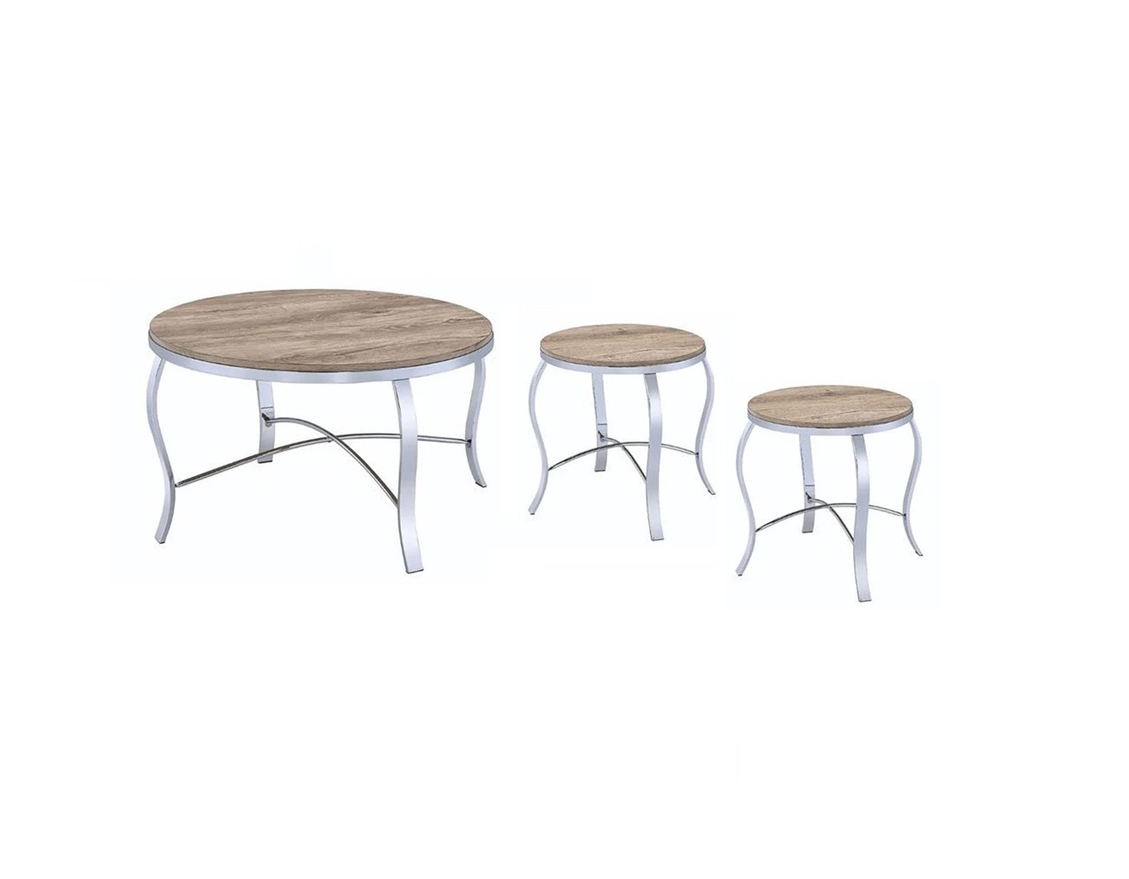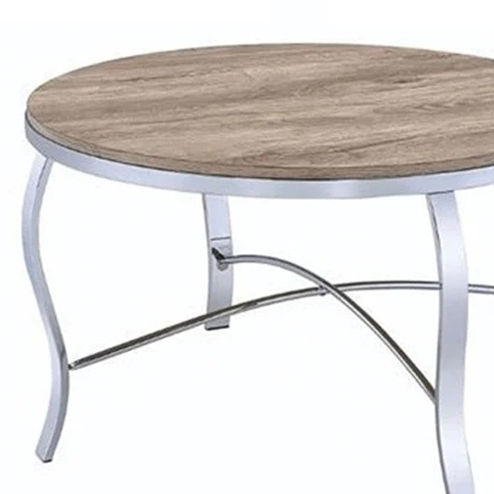 - Features a brown manufactured wood round tabletop surface.