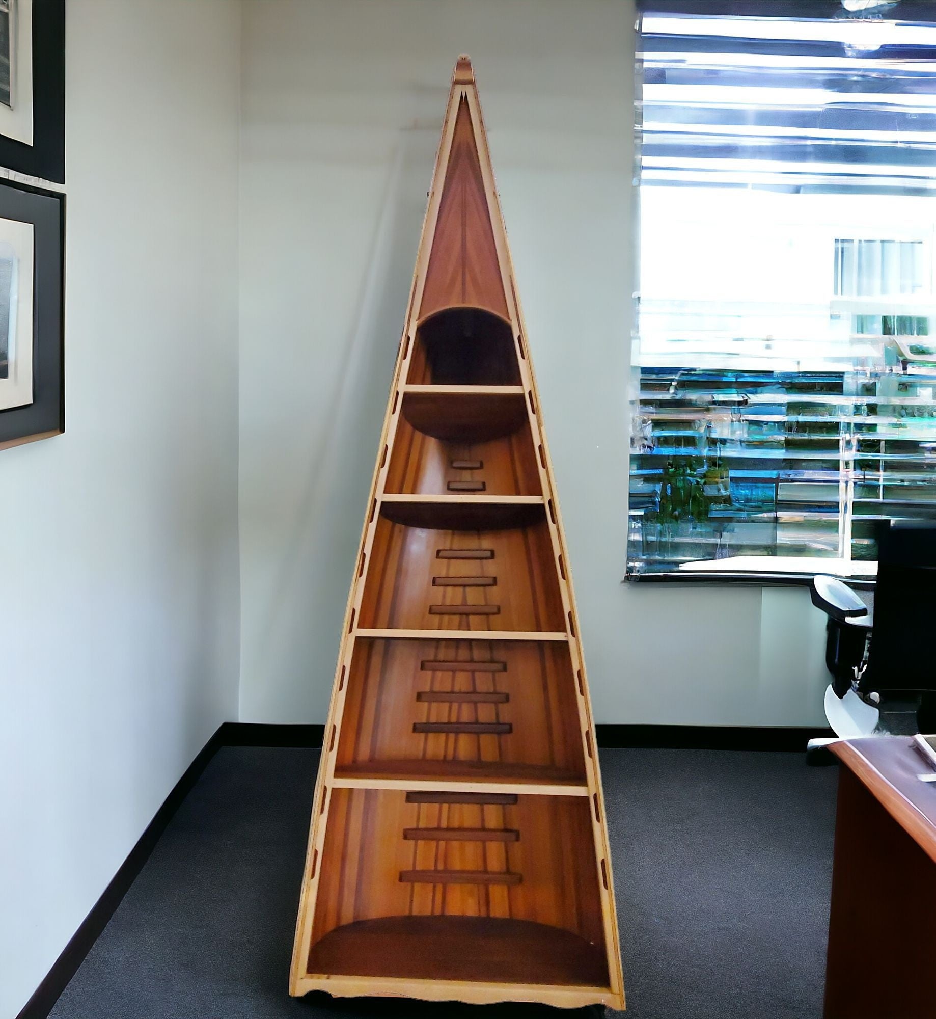 - Contemporary cedar bookcase with 4 shelf tiers and 50lb weight capacity.