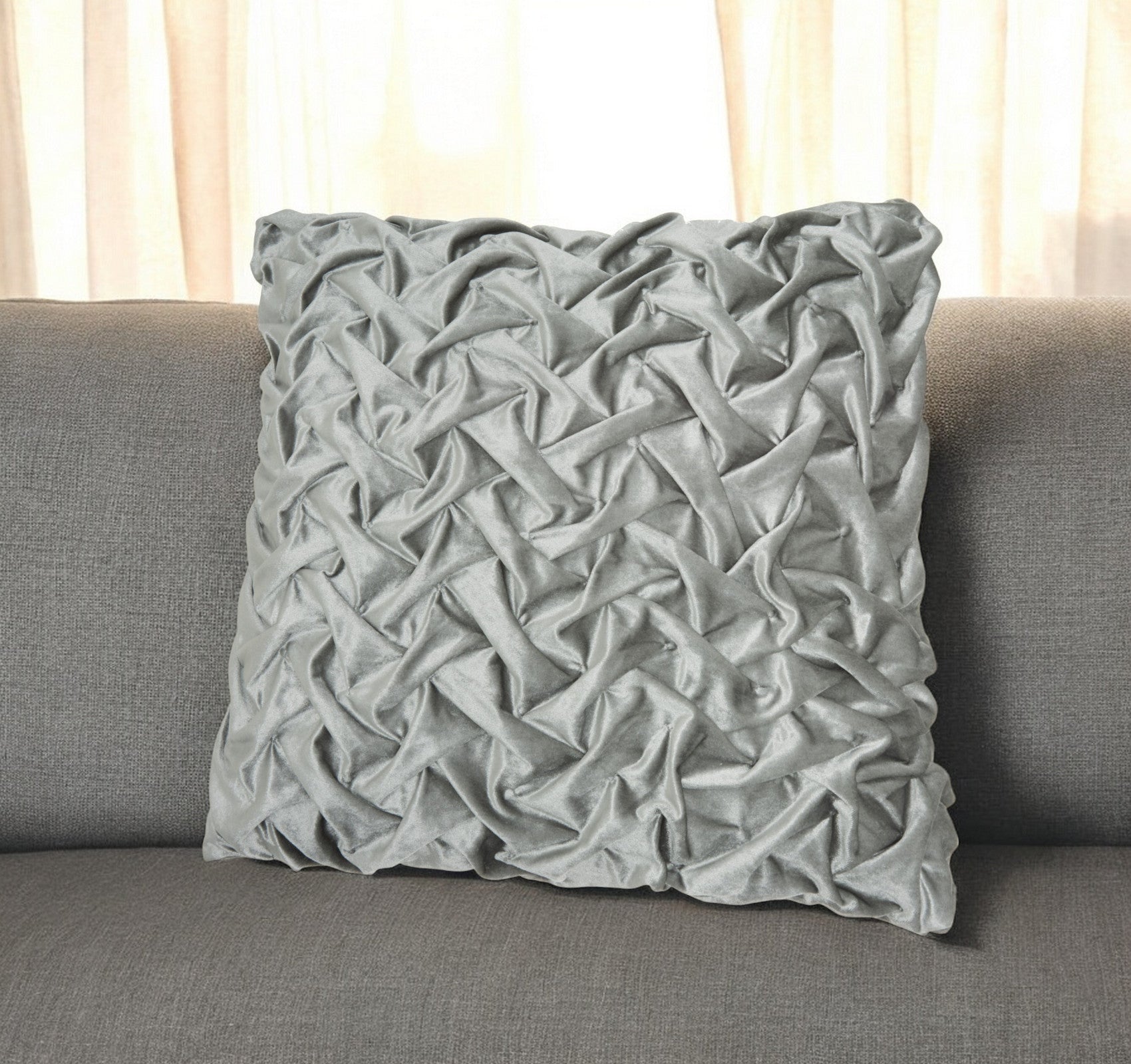 - Handmade textured accent throw pillow in a warm and neutral gray, perfect for adding a decorative touch to your home.