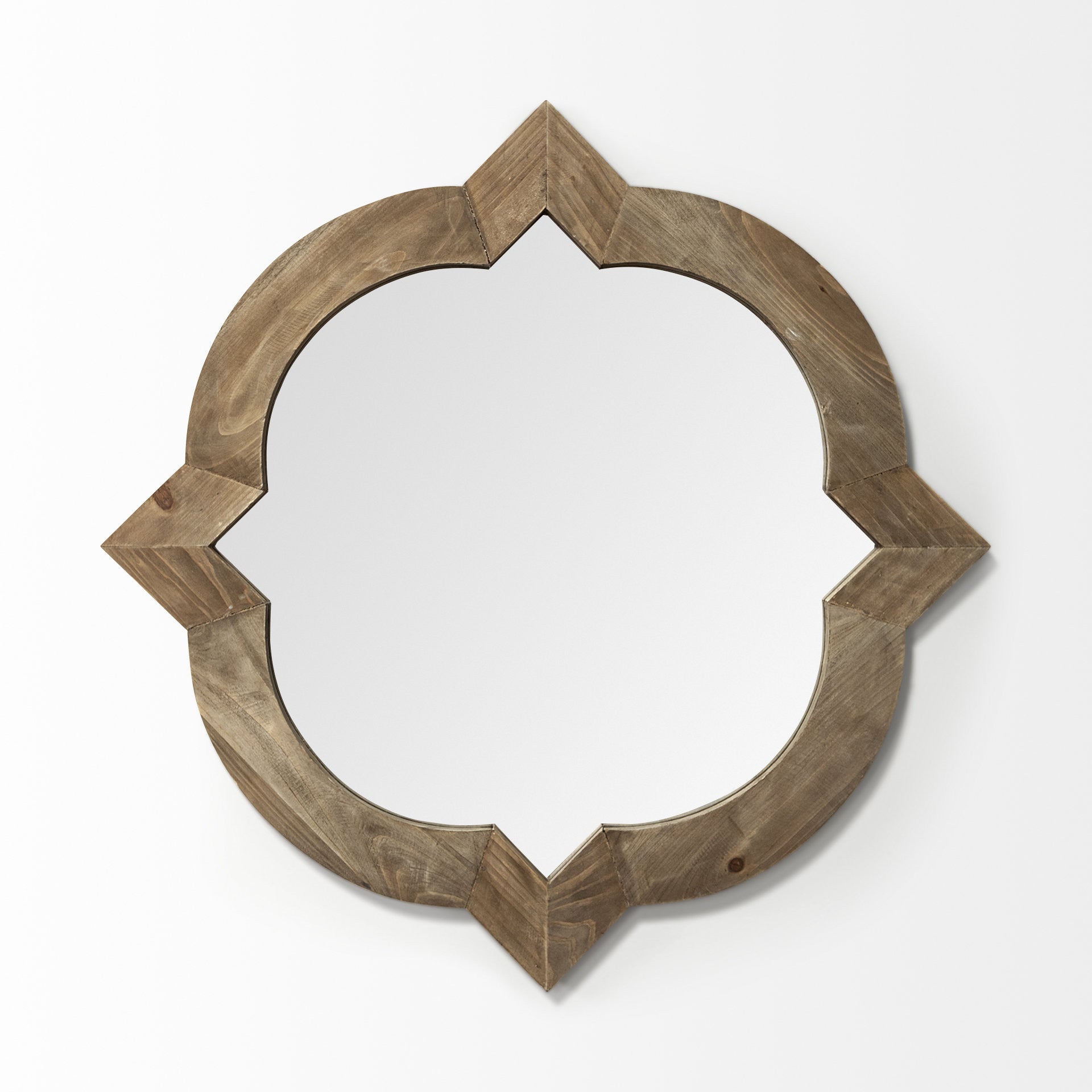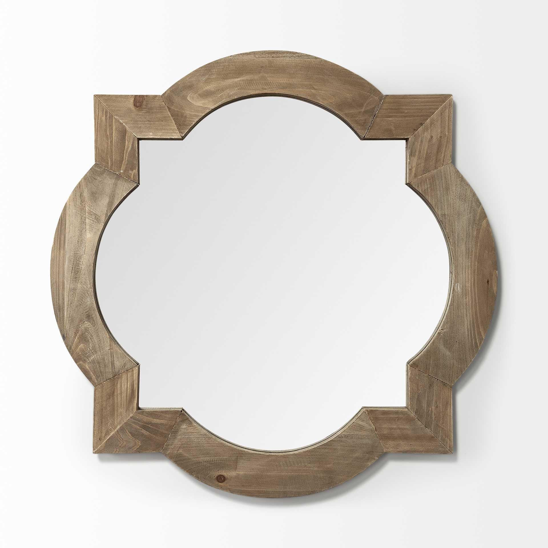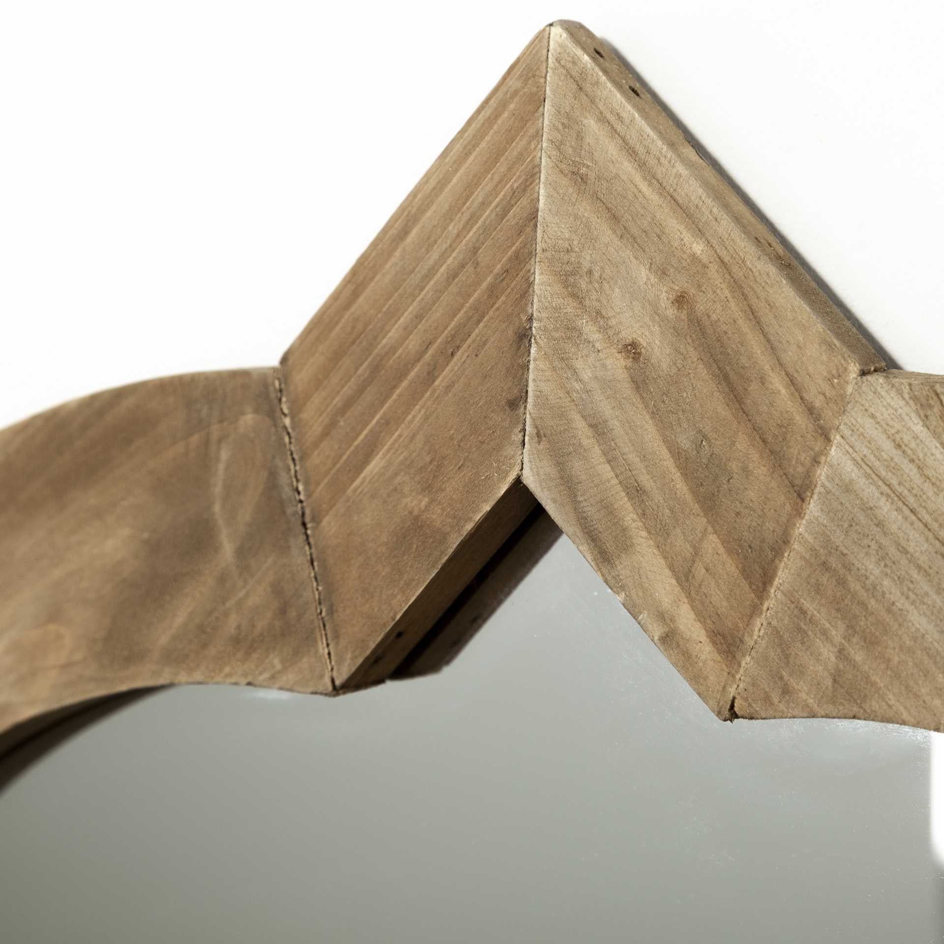 - uniquely shaped natural finish pine wood mirror, with a cicular and square look, its sure to be a head turner.