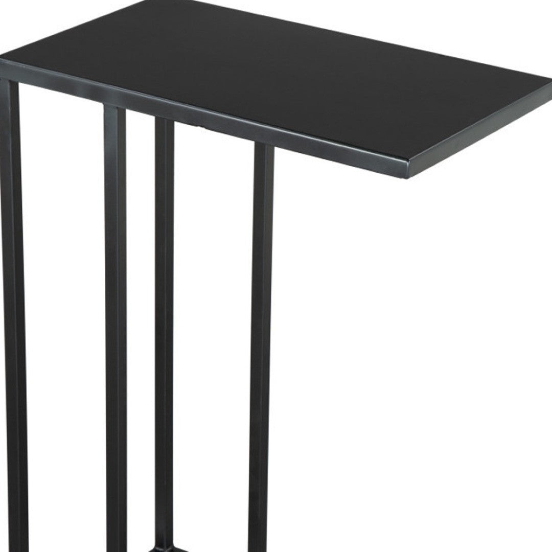 - Features a black iron rectangular tabletop surface.