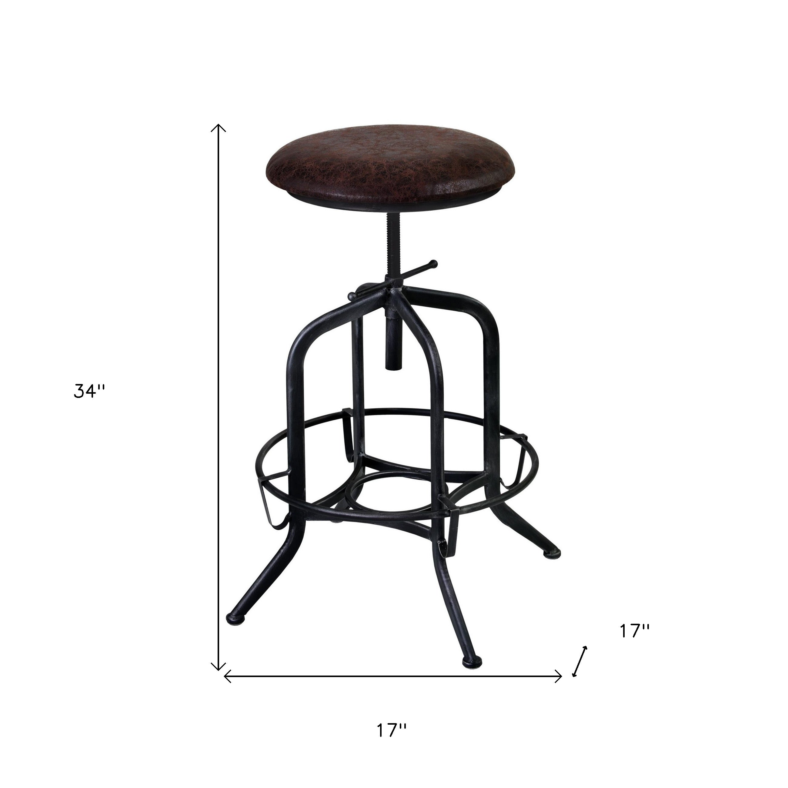 - The round seat is well cushioned and upholstered with a distressed finish for a vintage design style.
