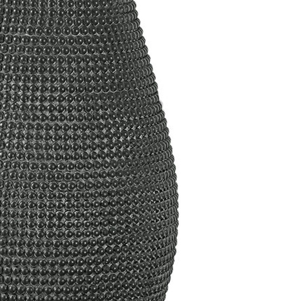 - Contemporary style table lamp with a matte black polyresin base that features a textural dot pattern.