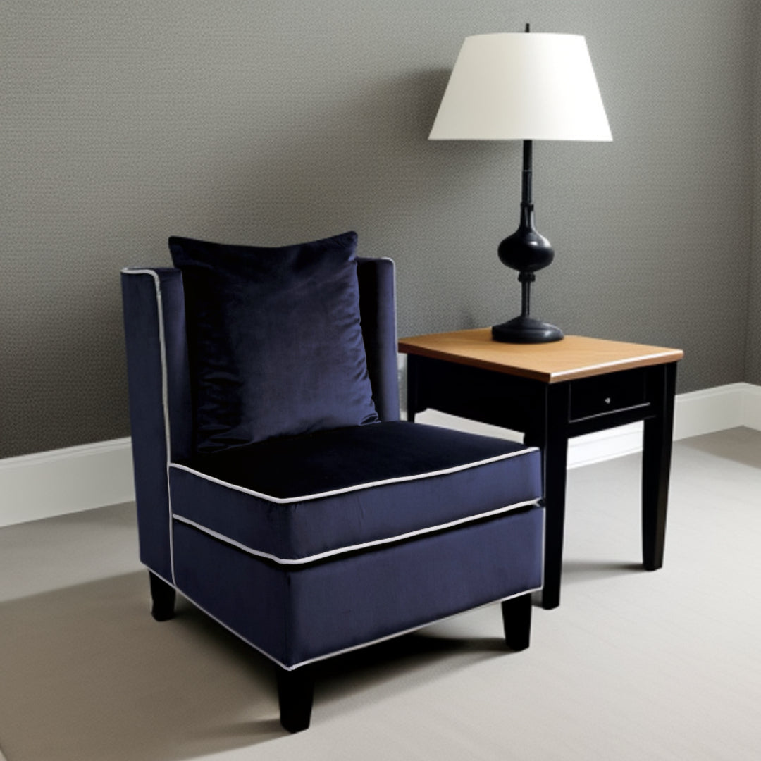 - Plush velvet upholstery in a beautiful dark blue color for a sophisticated look.