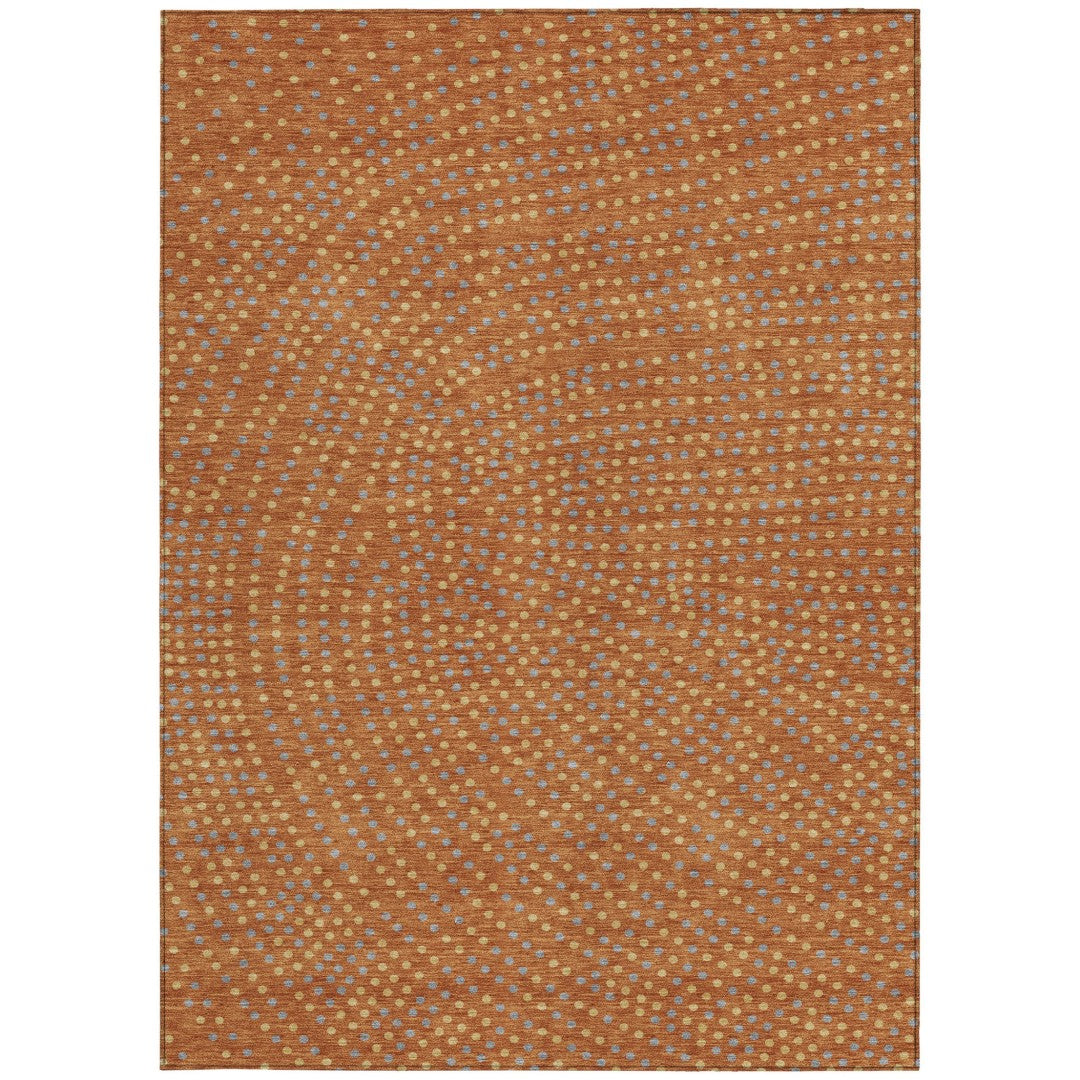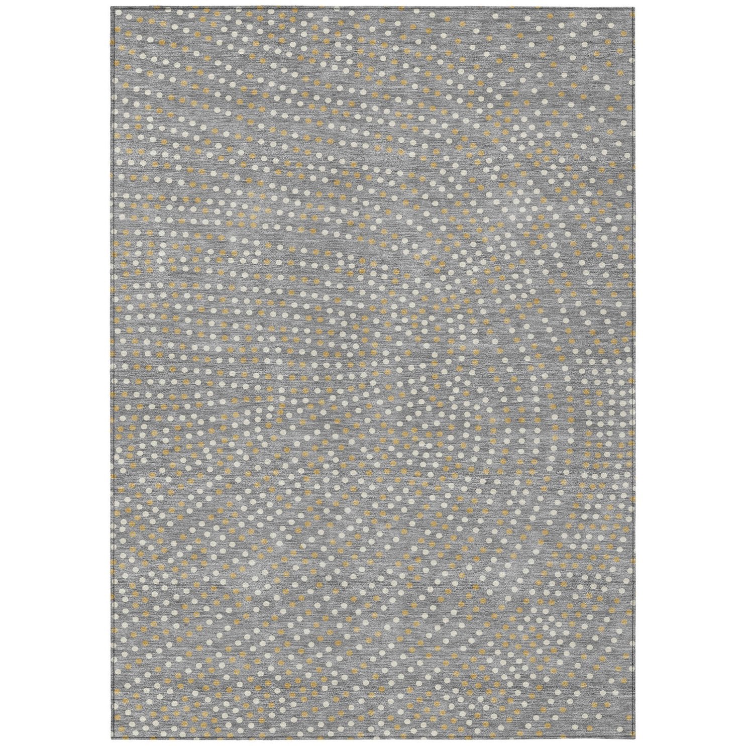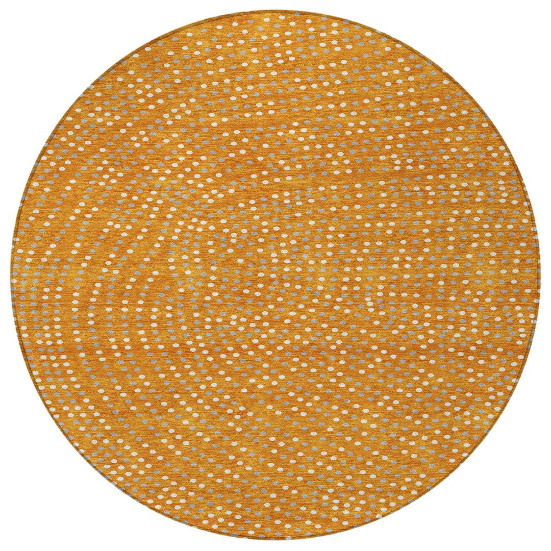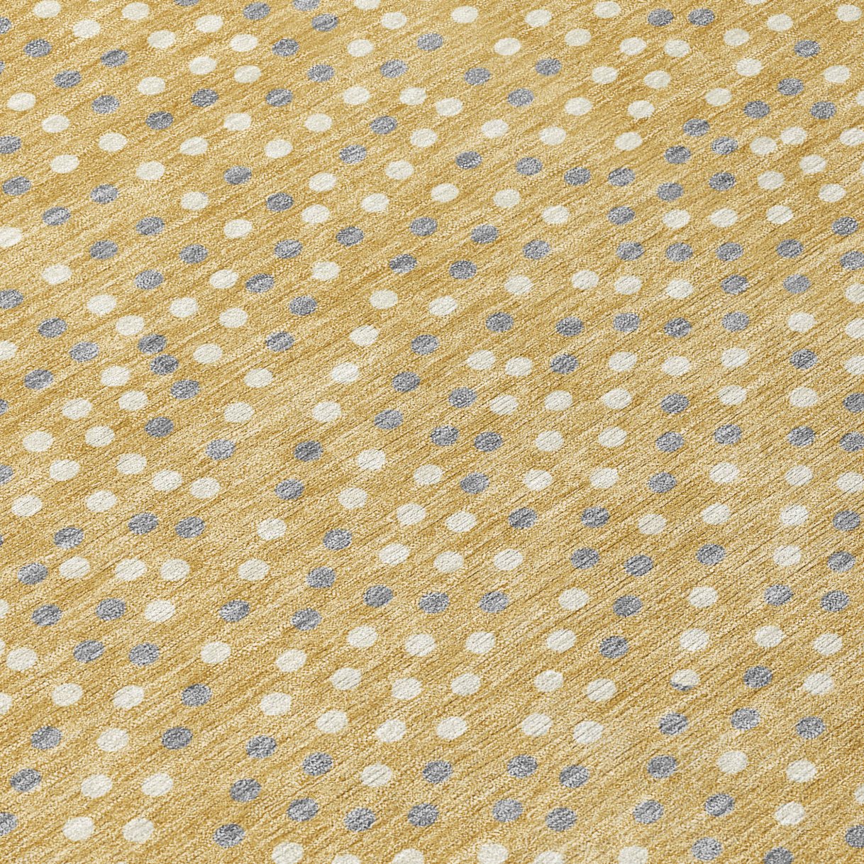 - Machine made outdoor rug with stain-resistant polyester material in a stylish gold color.