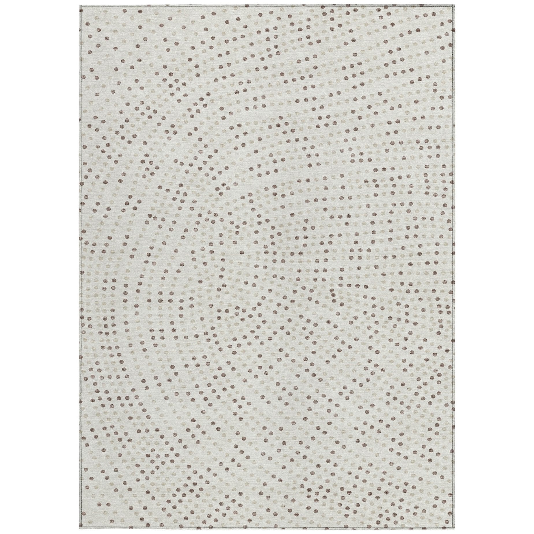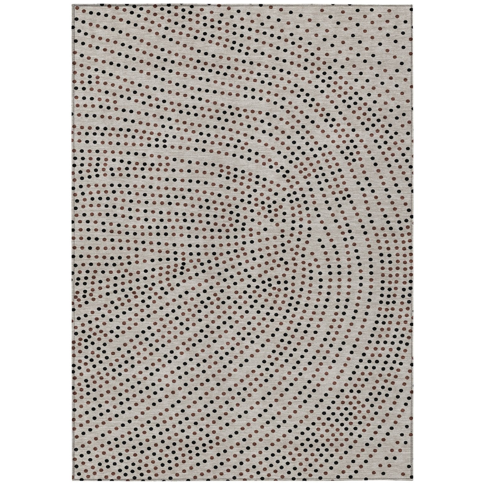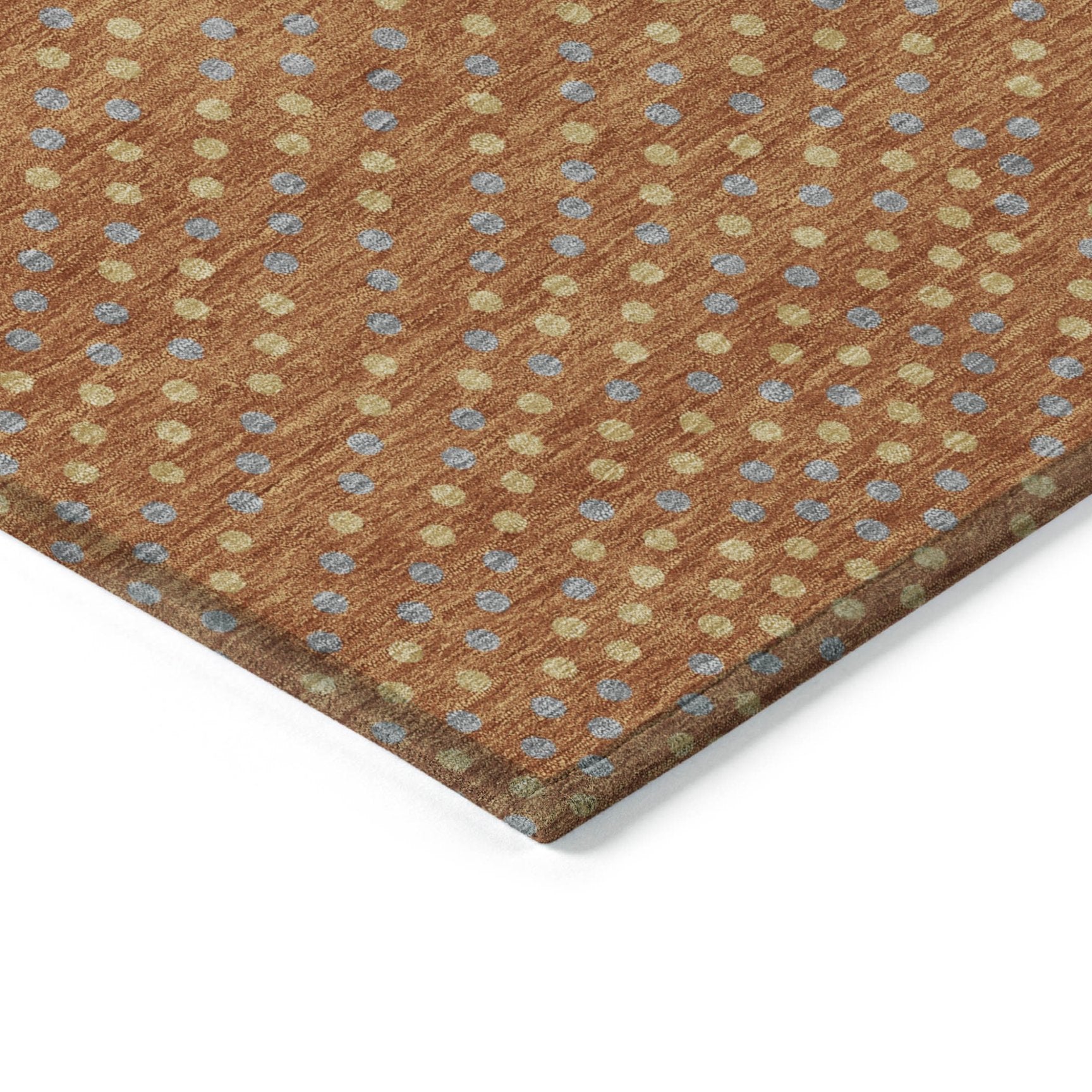 - Machine made outdoor rug with stain-resistant polyester material in a stylish gold color.