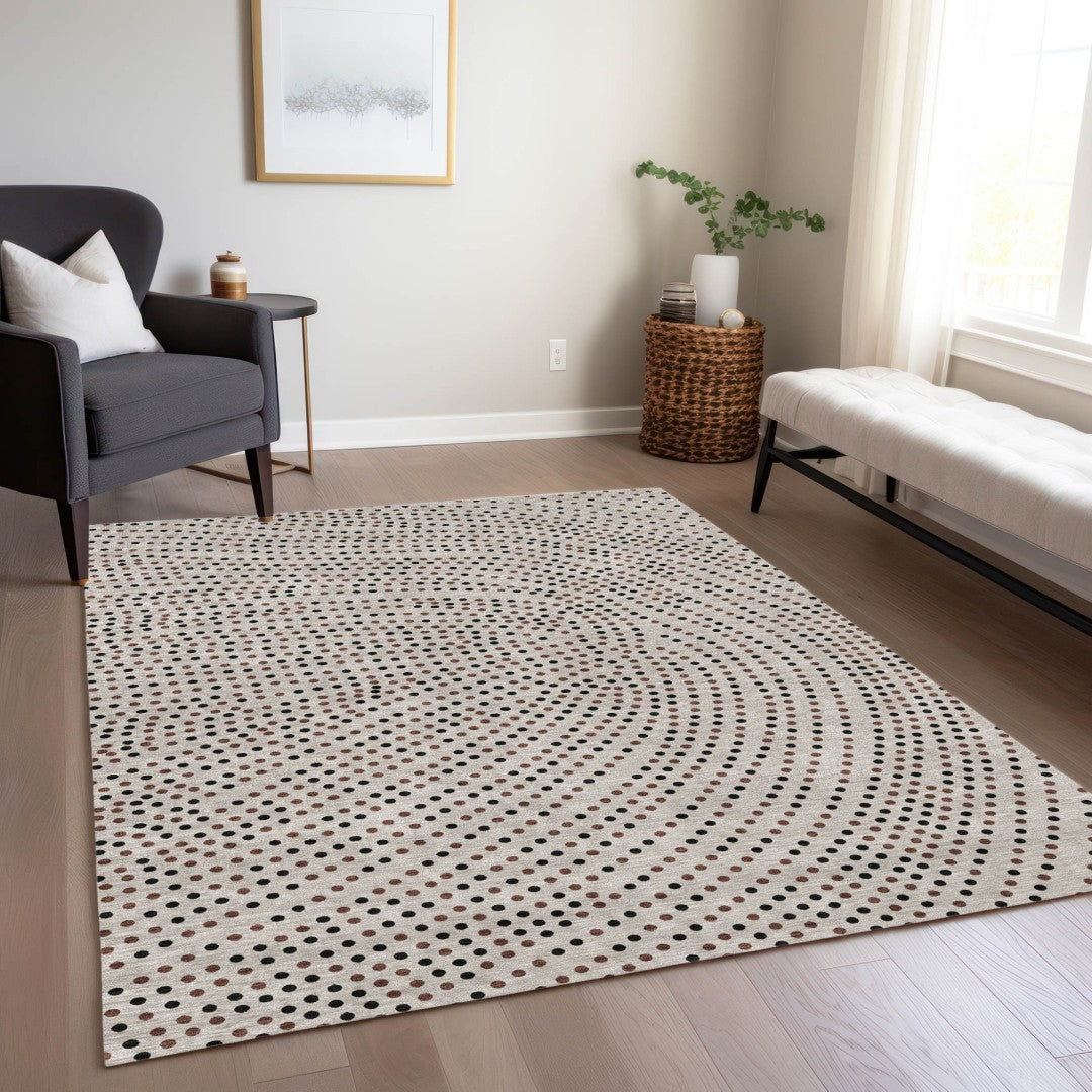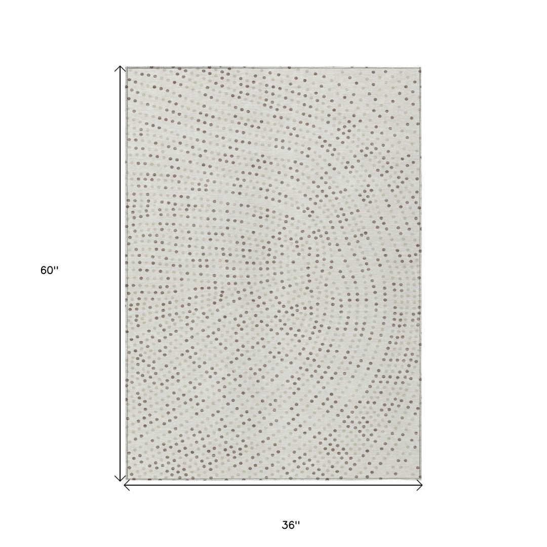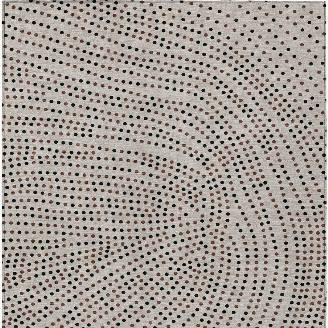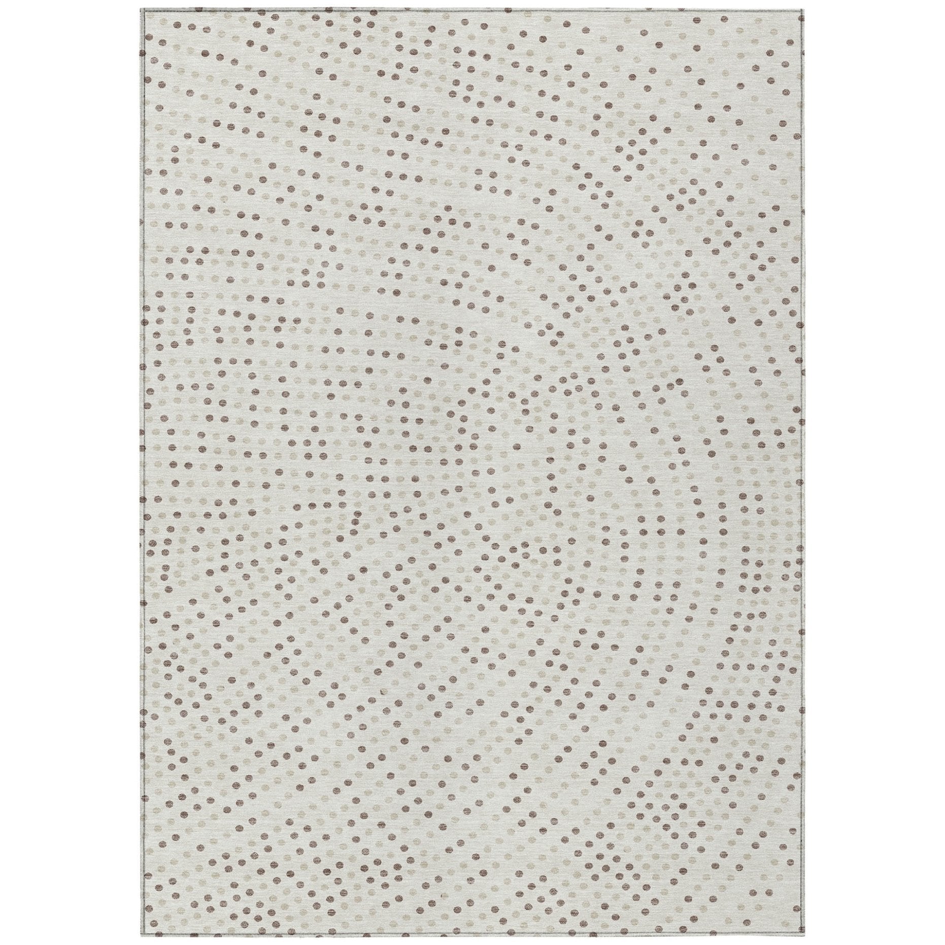 - Machine made outdoor rug with stain-resistant polyester material in a stylish gold color.