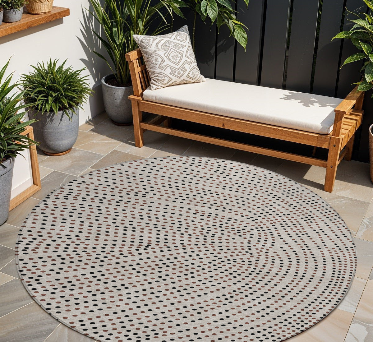 - Classically shaped, this versatile round rug is a great way to accent your indoor or outdoor space.