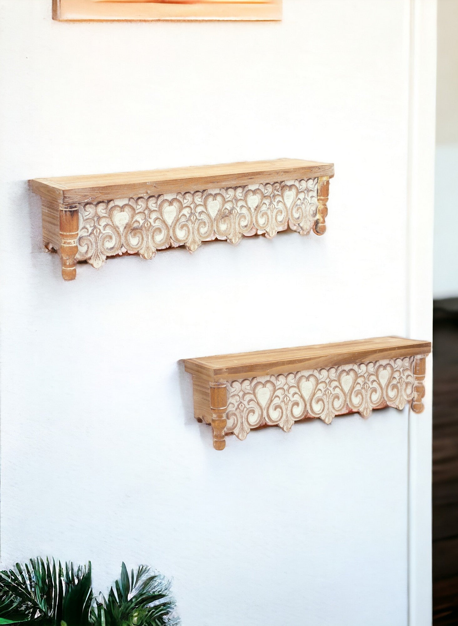 - Set of two shelves. Small = 5.8" x 22.5" x 6" and Large = 5.8" x 28.5" x 6.5".