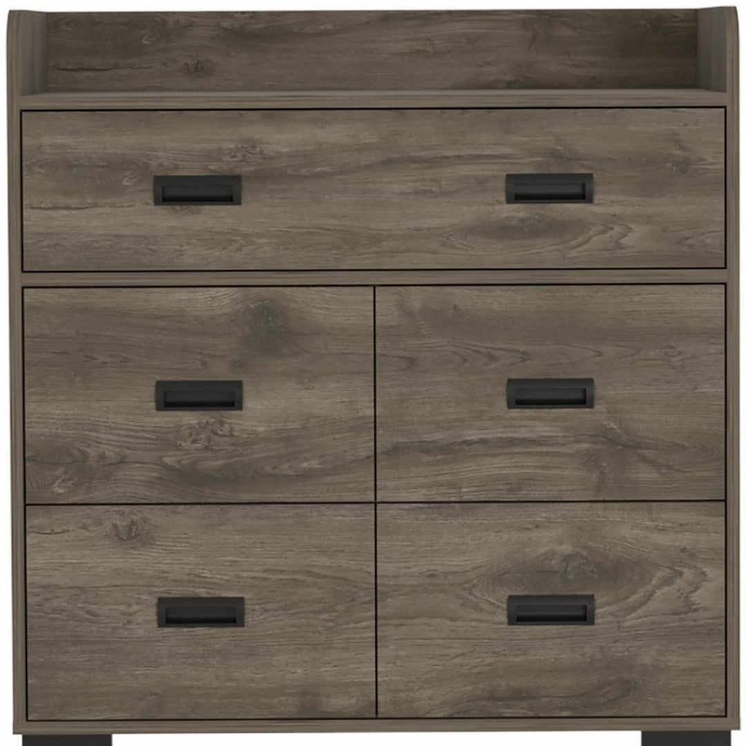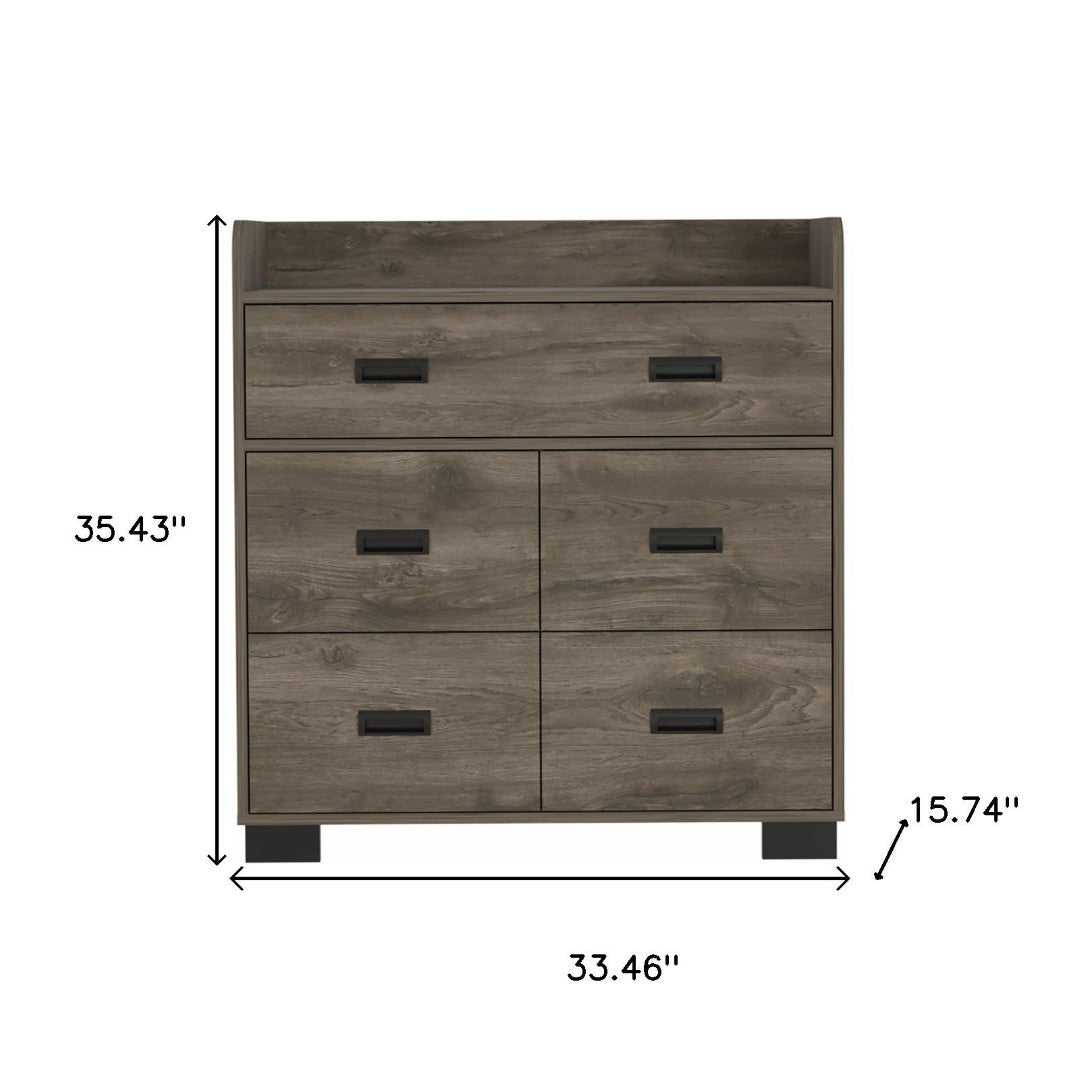 Transform your bedroom into a neat, stylish retreat with this compact five-drawer dresser. Crafted from high-grade manufactured wood and finished in a rich dark brown, it combines practical storage and a refined aesthetic—ideal for small spaces, guest rooms, or as a secondary storage piece in larger bedrooms. The dresser arrives fully assembled and offers a broad top surface for decor or daily essentials, while a combination of drawer sizes keeps clothing and accessories organized and accessible.
