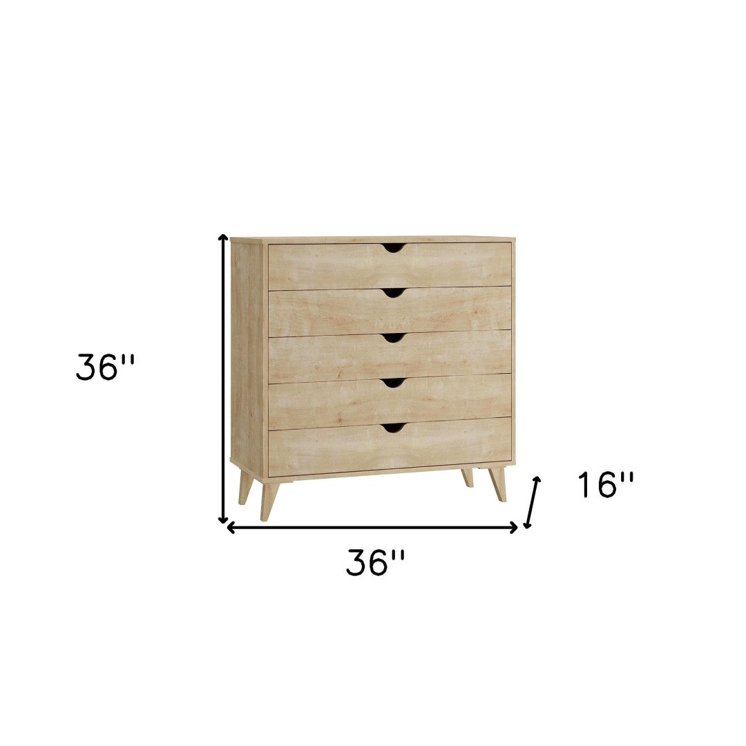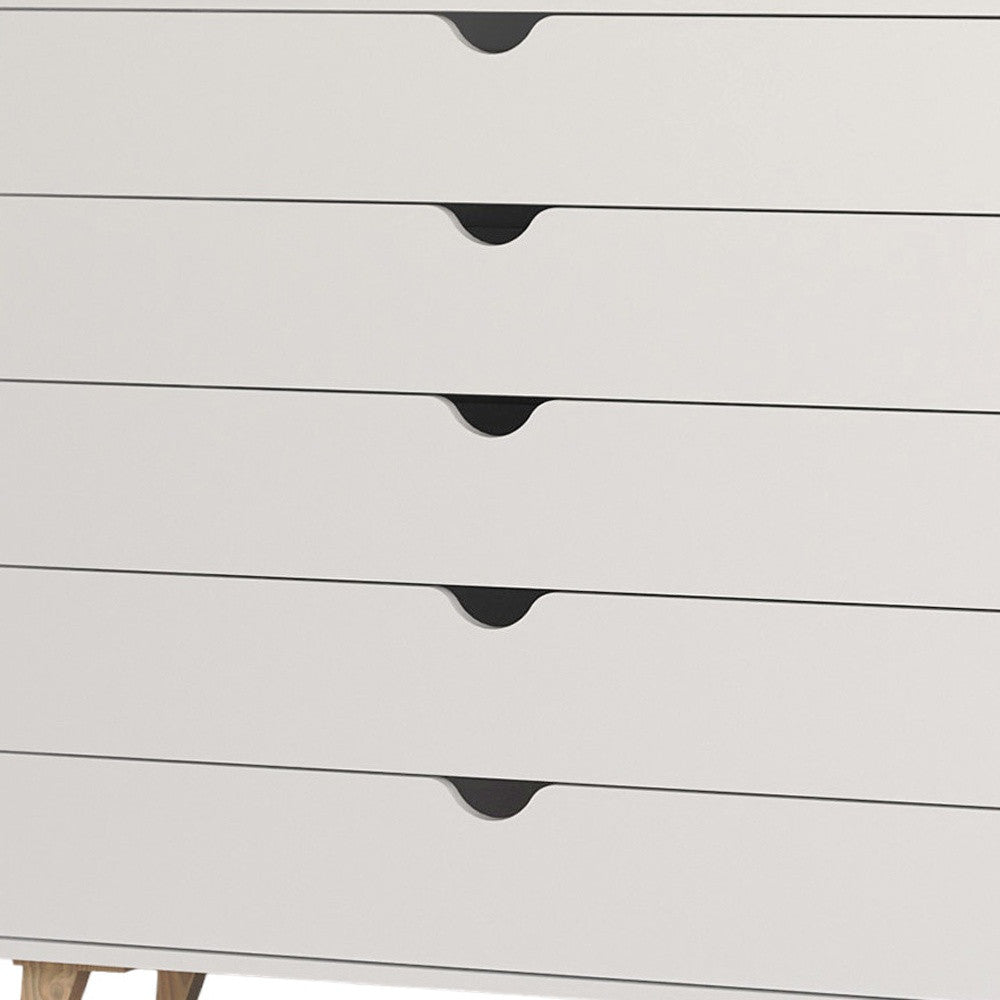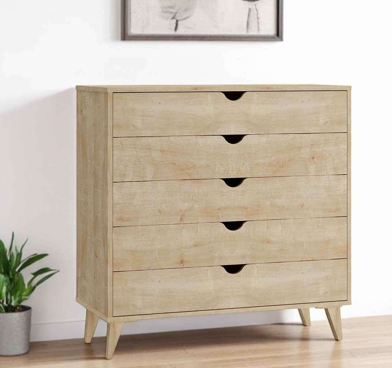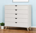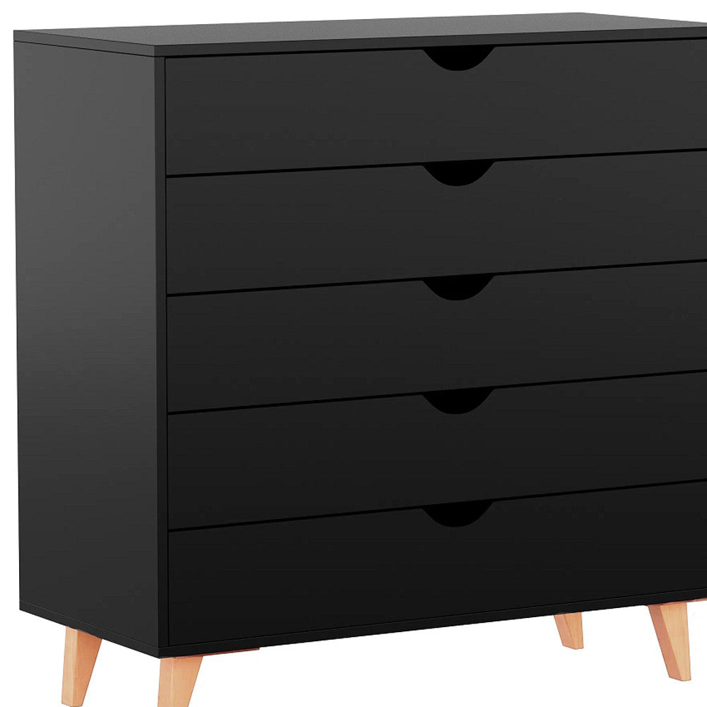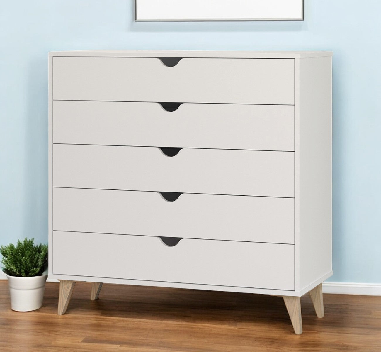 - Sleek modern and minimalist five drawer dresser or accent storage cabinet.