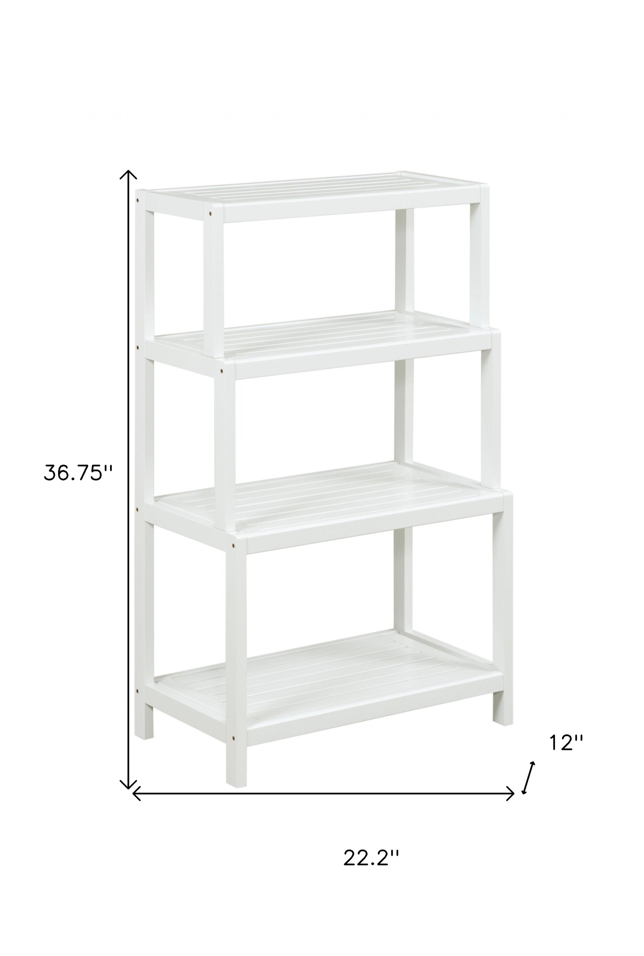 - Solid wood graduated step bookcase features a water resistant finish so a good option for bathroom, kitchen, or laundry.