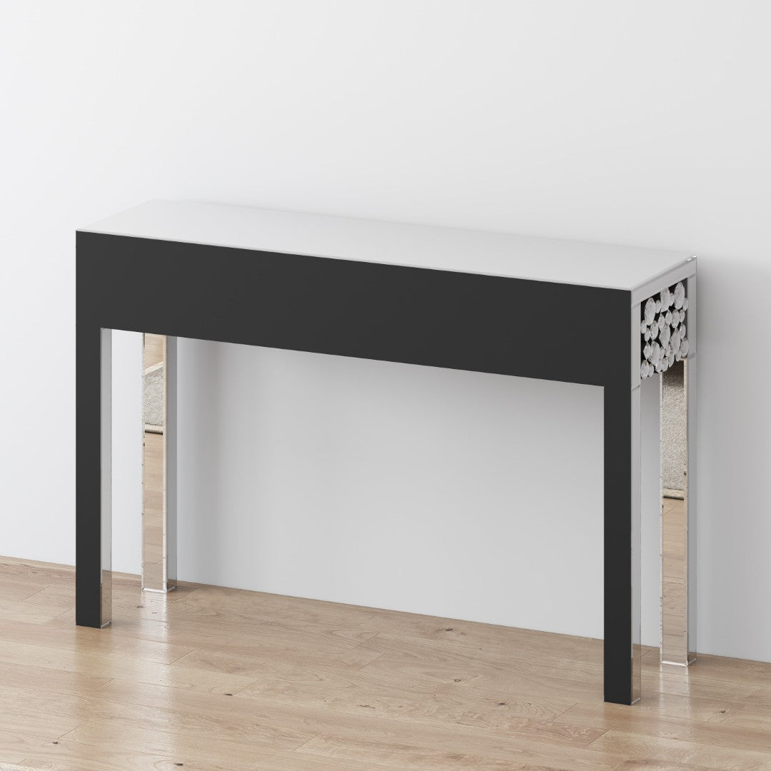 - Add some glam lux glitz to your space with this mirrored glass and faux crystal bling console table.