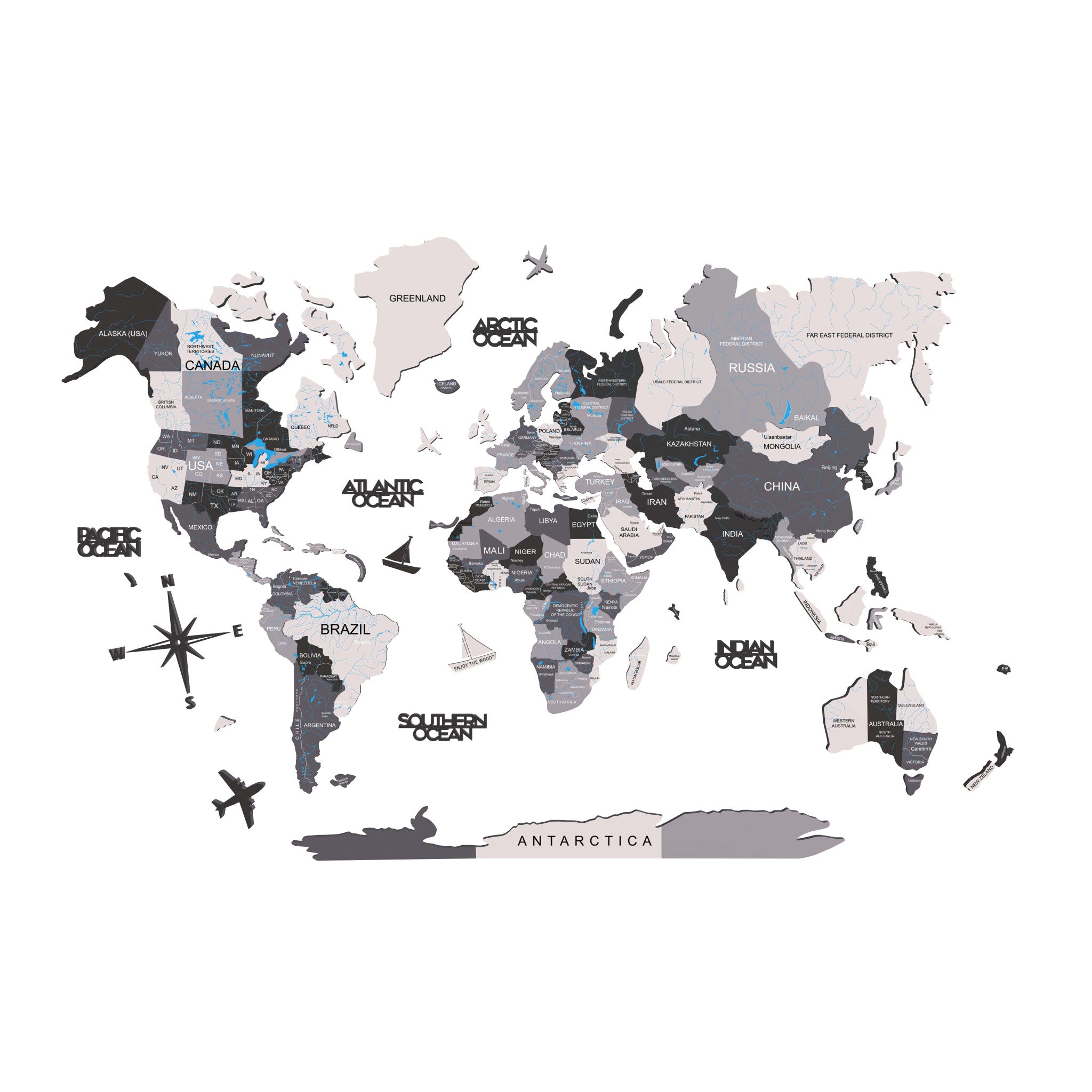 - Perfect for travel enthusiasts and home decorators - handmade plywood wall decor featuring a world map design.