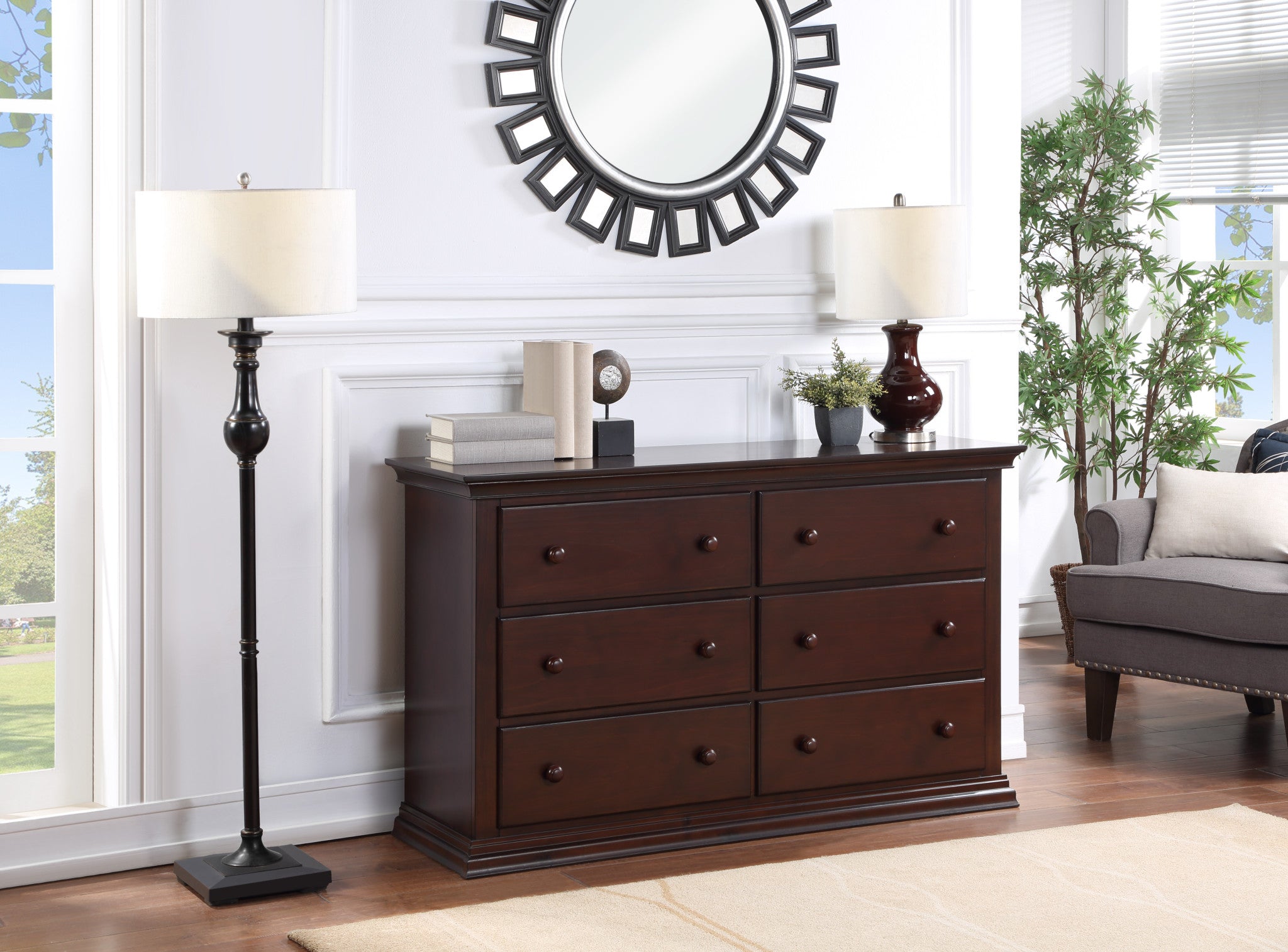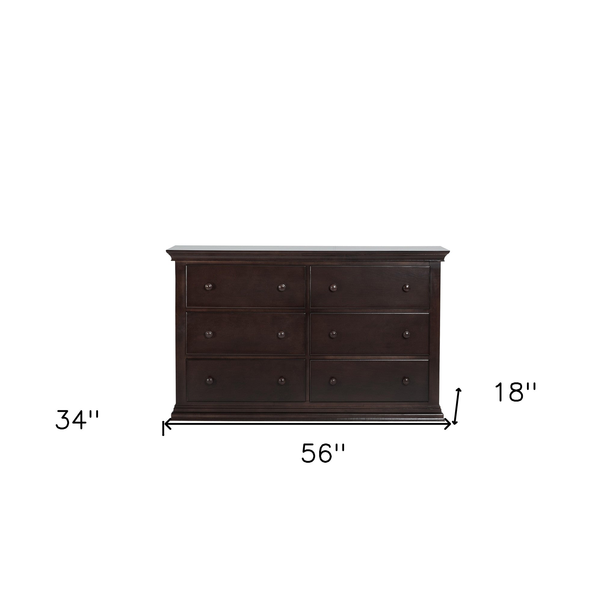 - Classic all over dark espresso brown 6 drawer double dresser.